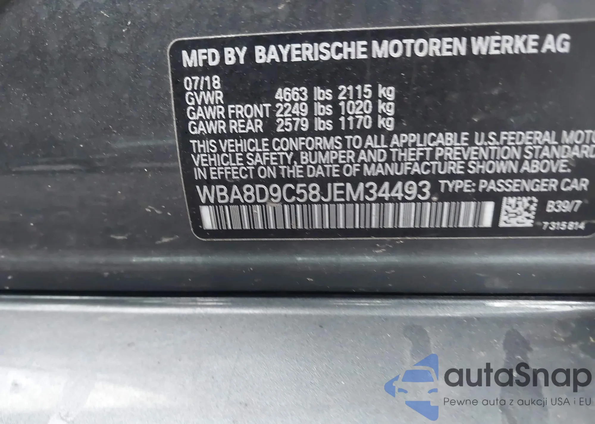 • VIN WBA8D9C58JEM34493