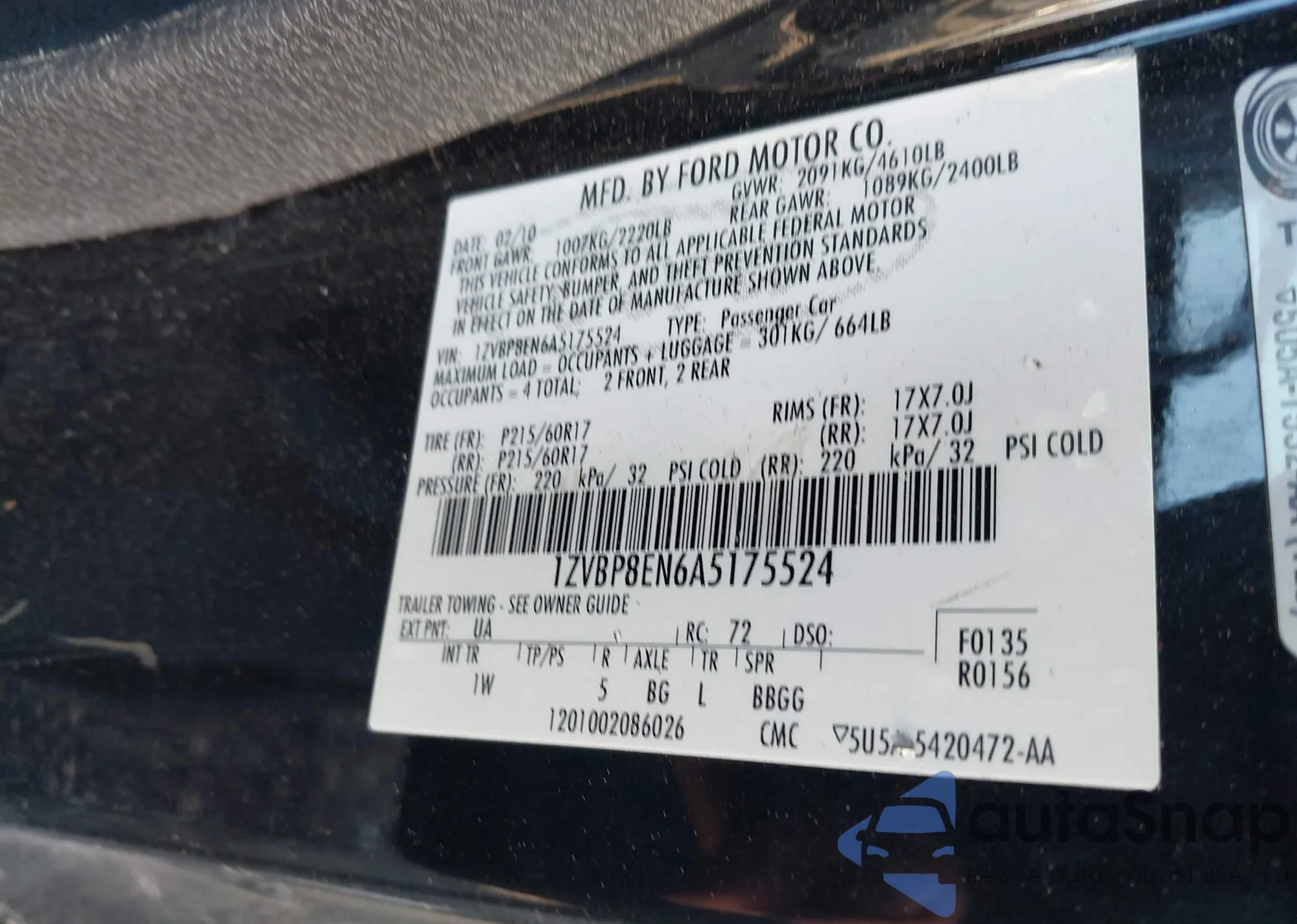 • VIN 1ZVBP8EN6A5175524