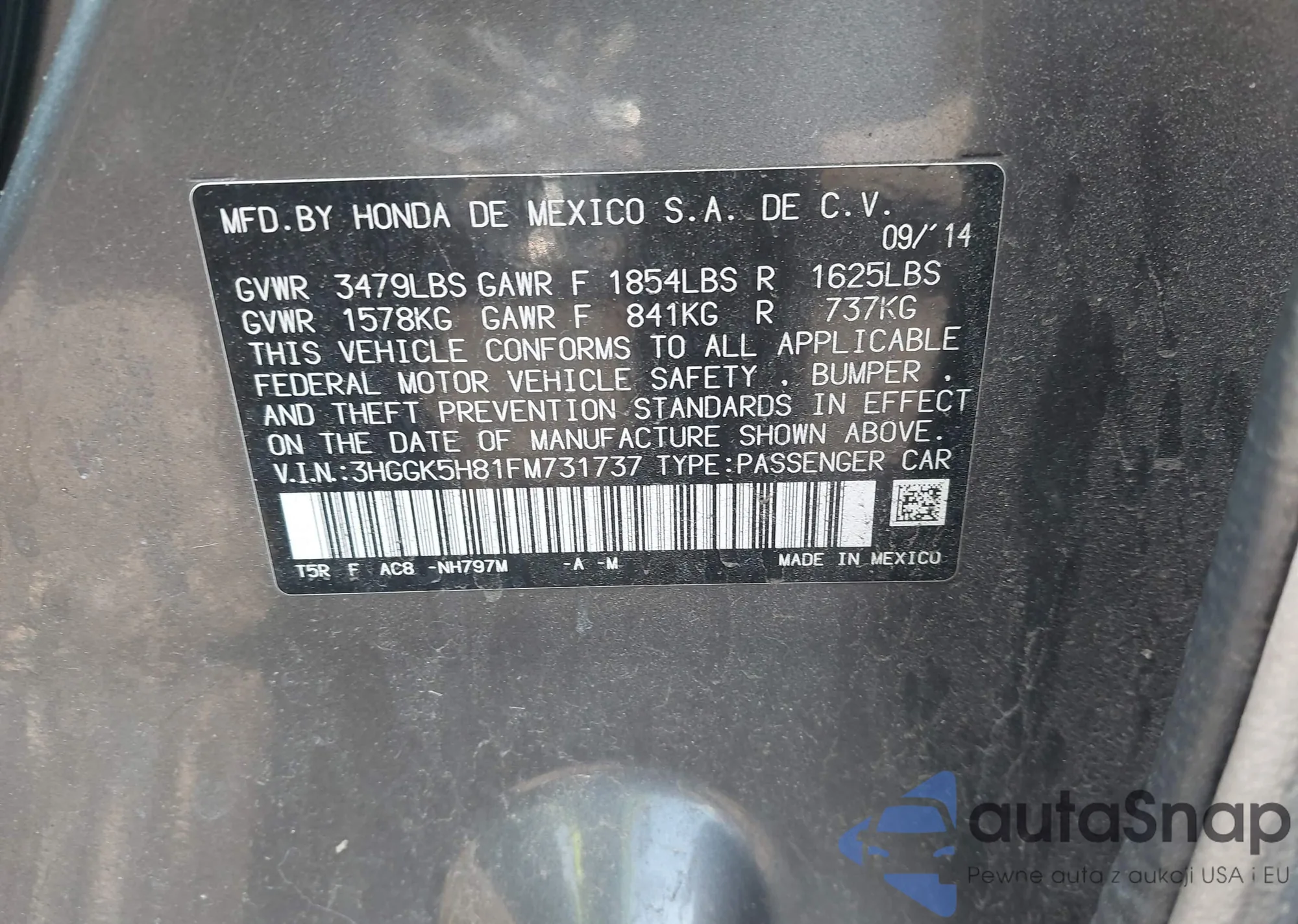 • VIN 3HGGK5H81FM731737