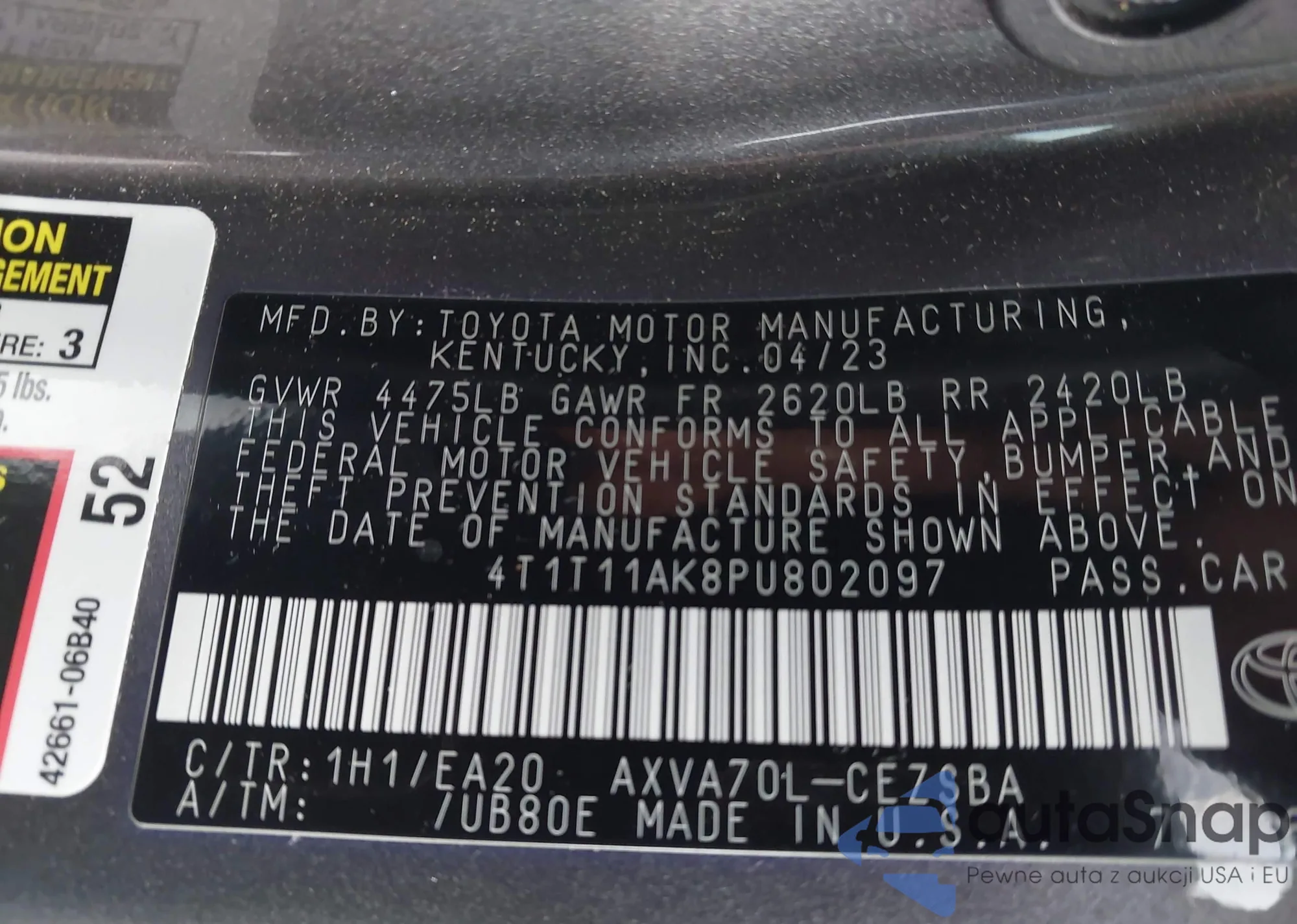 • Lot number 42316020