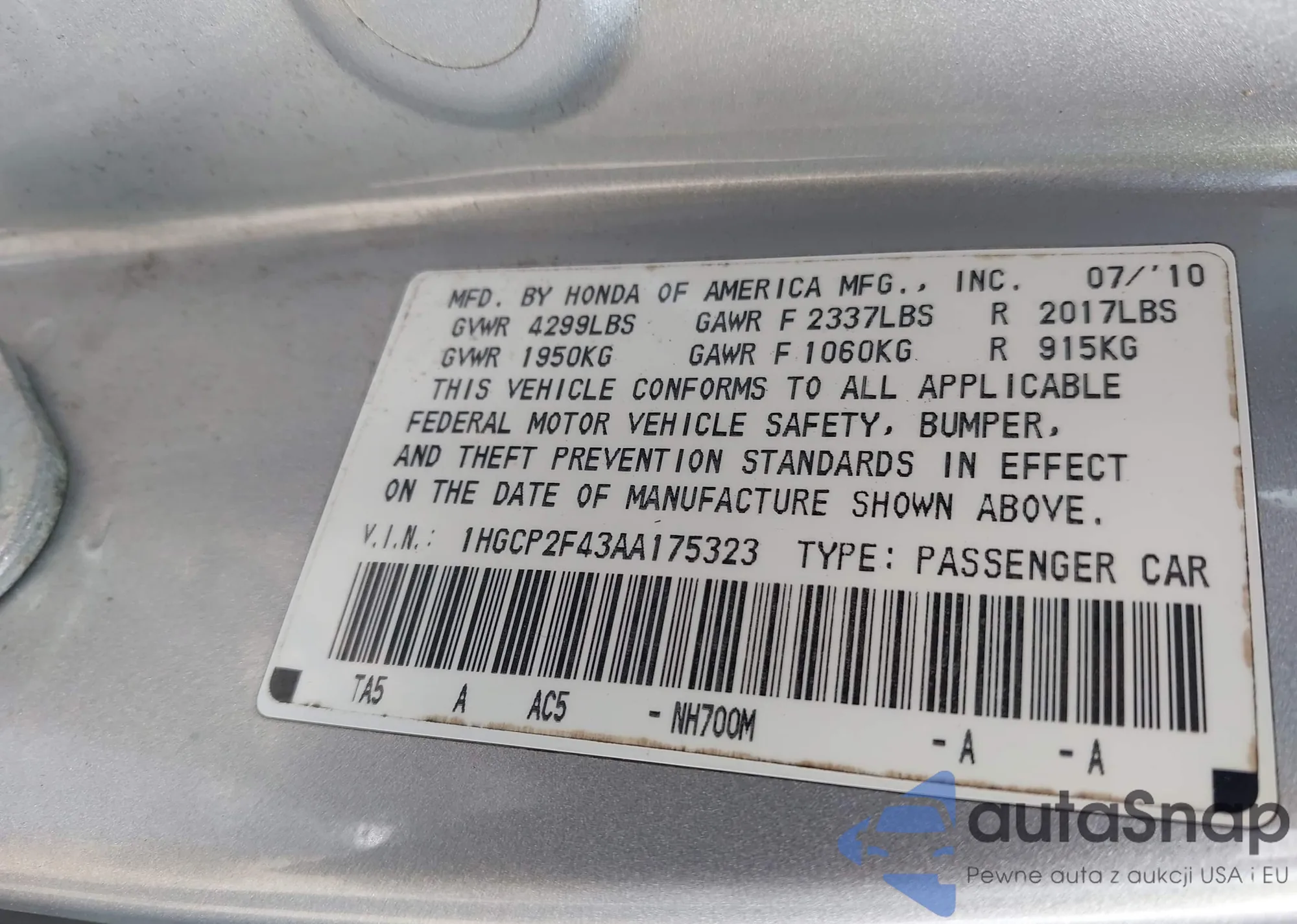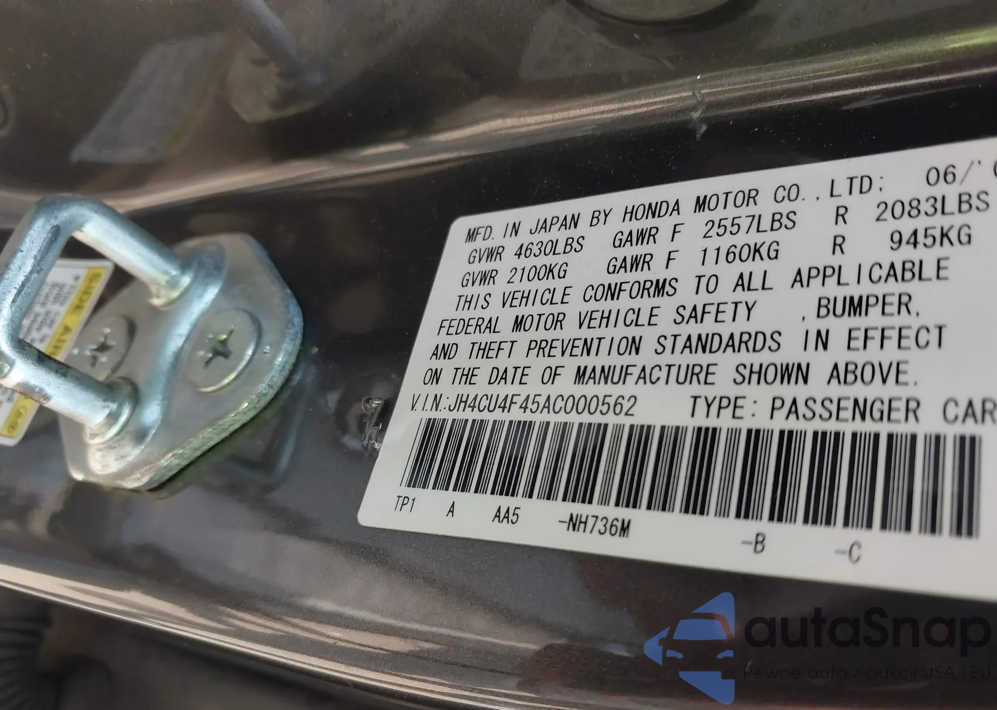 LOT: 42395928 VIN: JH4CU4F45AC000562