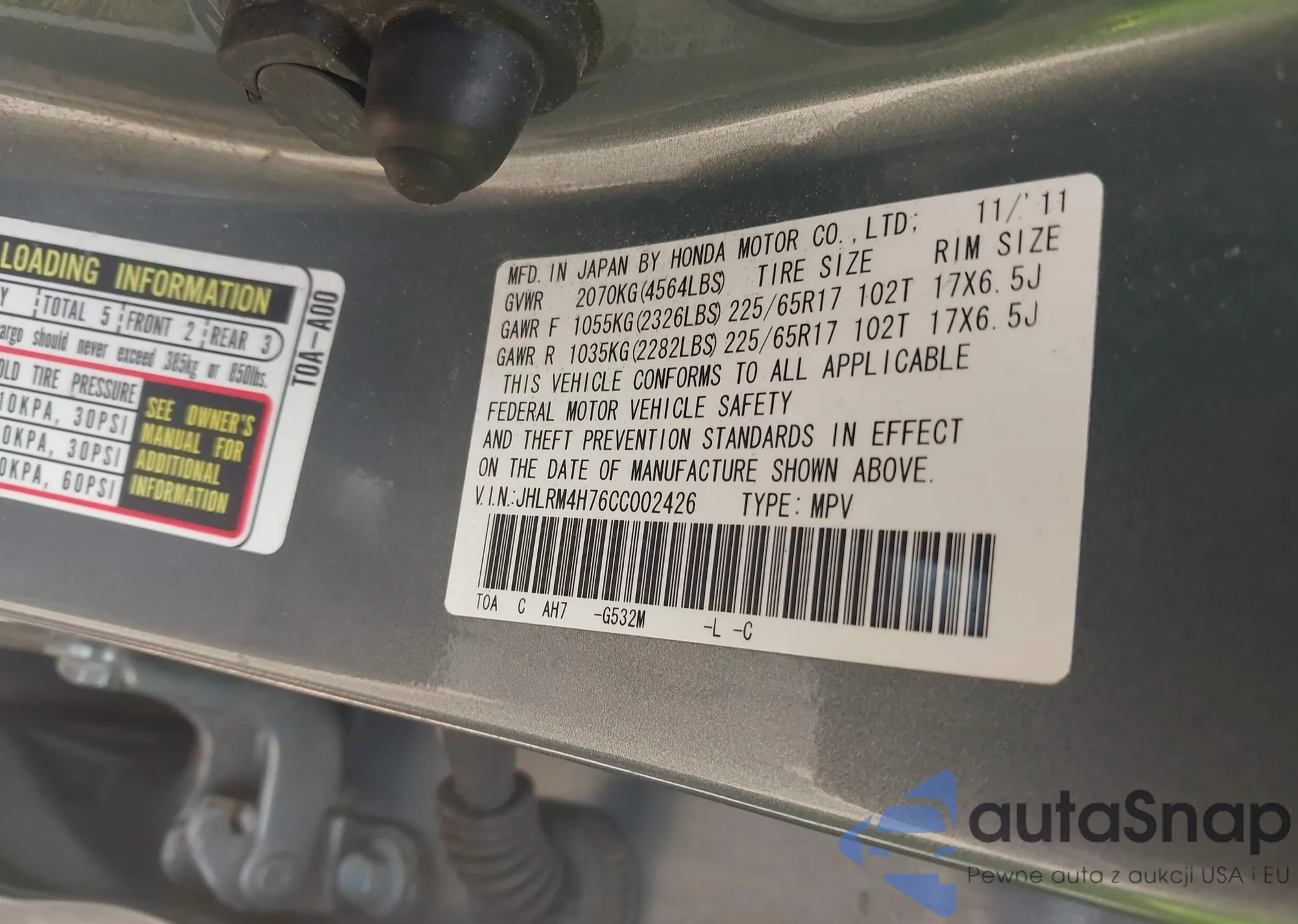 • VIN JHLRM4H76CC002426