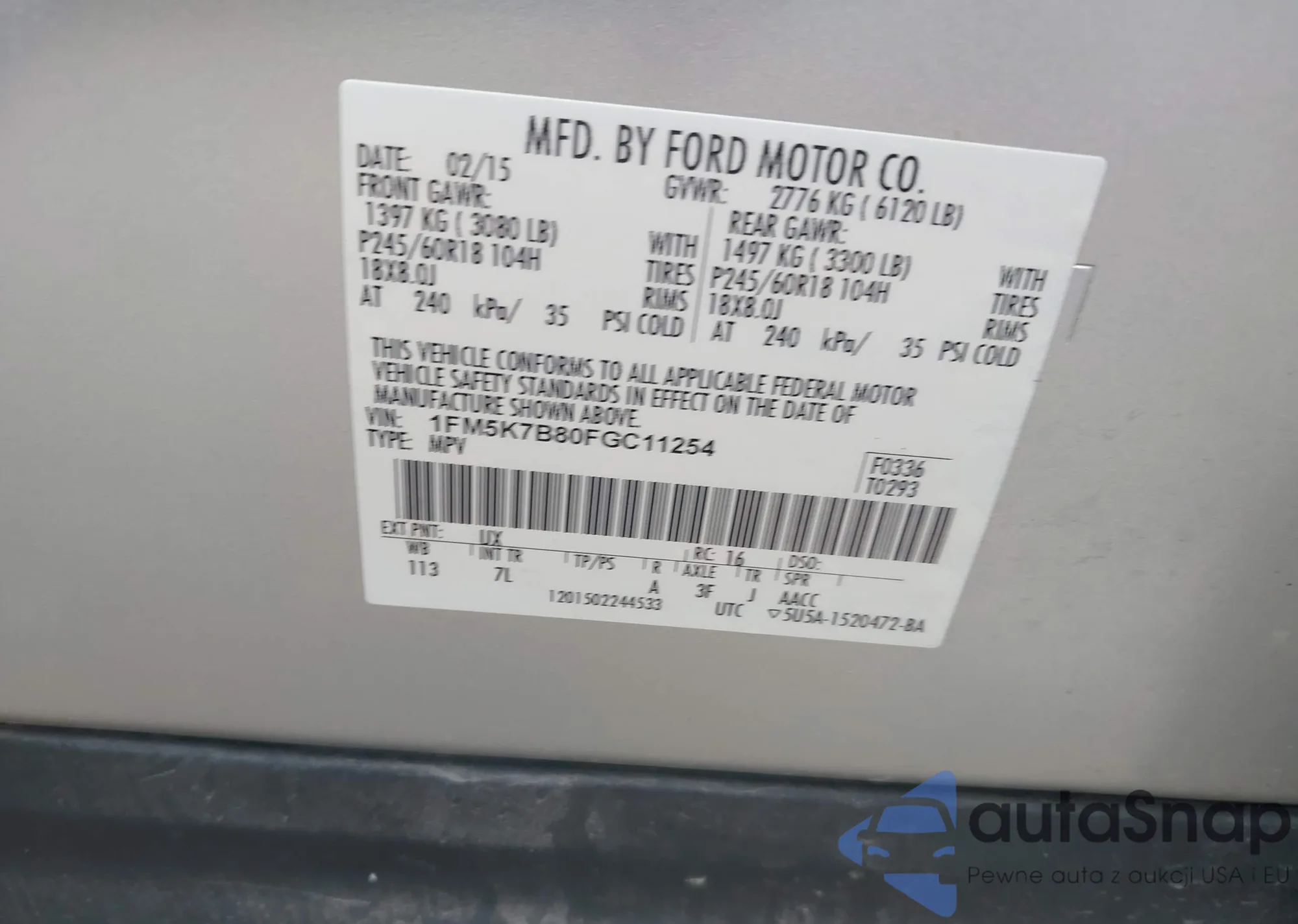 • VIN 1FM5K7B80FGC11254