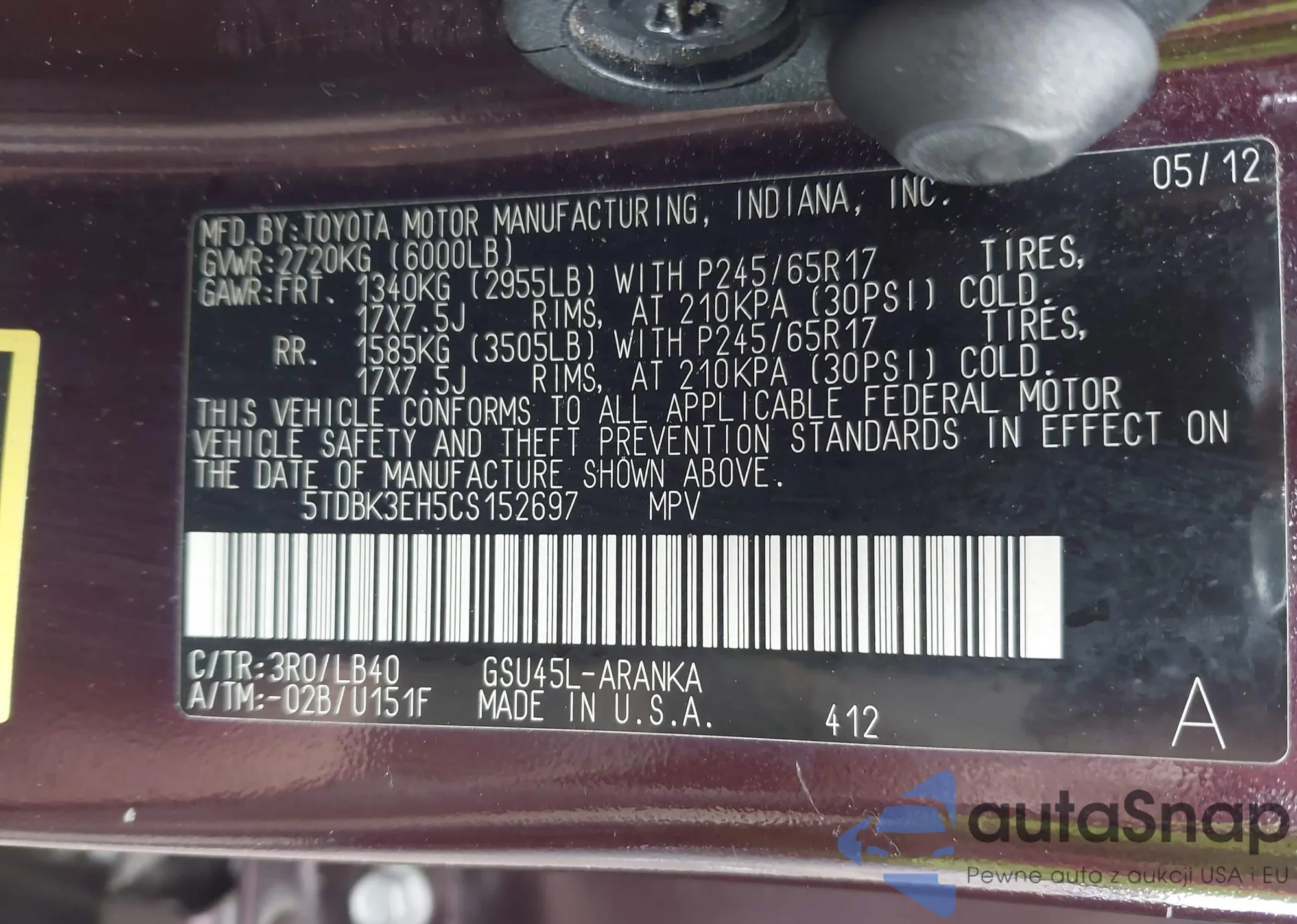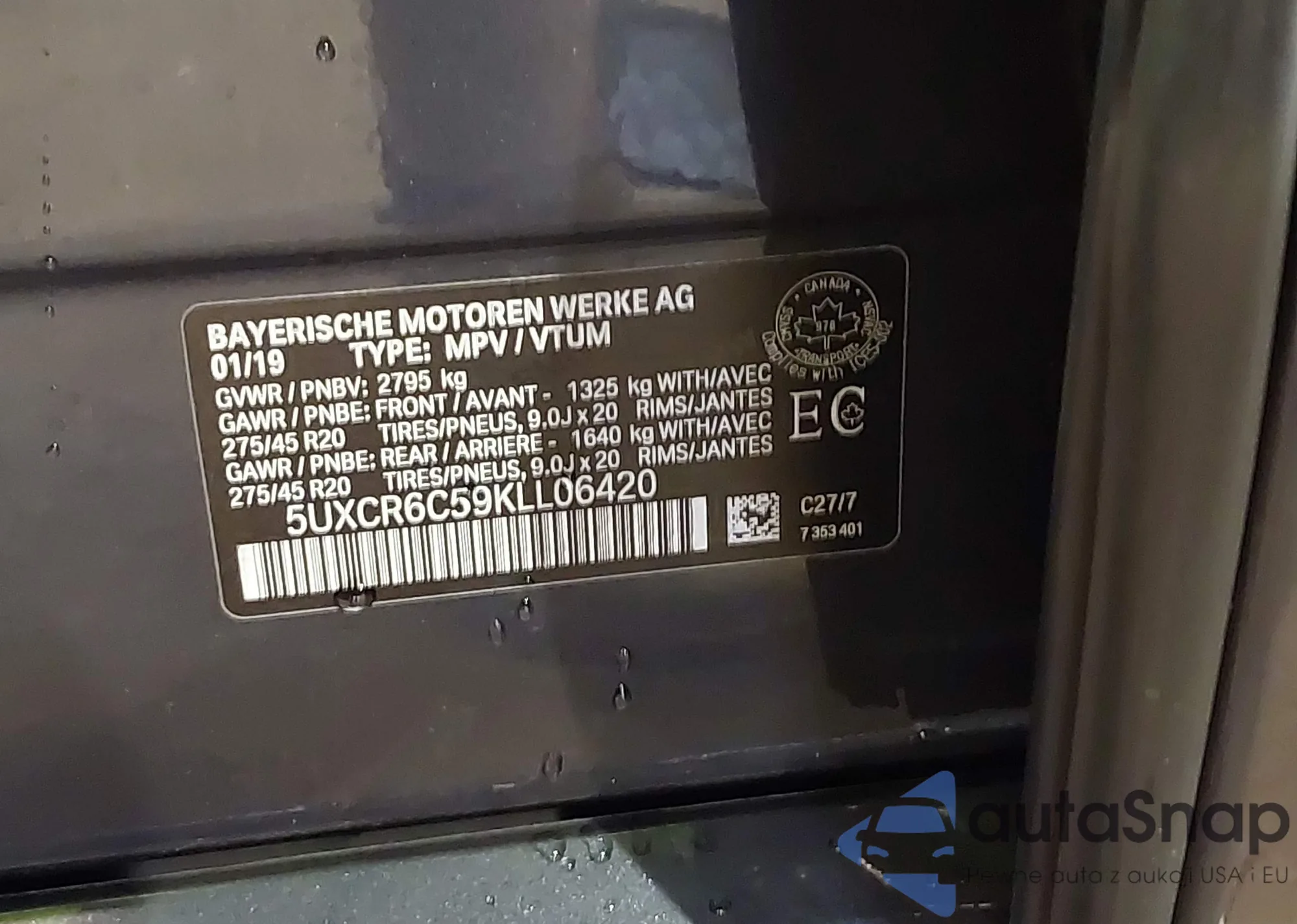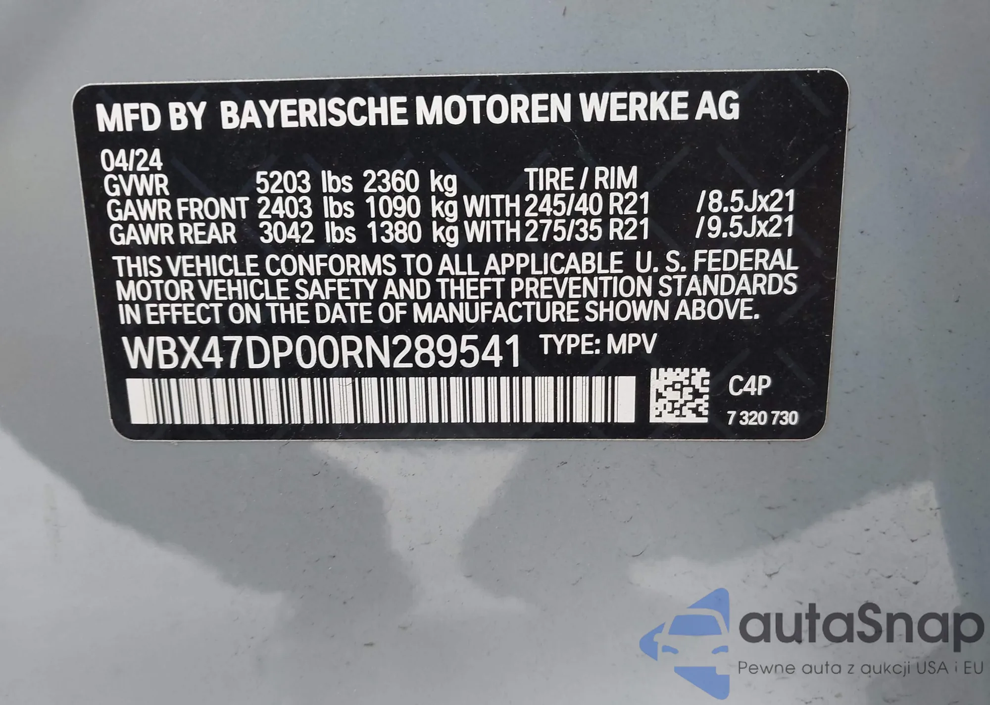 LOT: 41920481 VIN: WBX47DP00RN289541