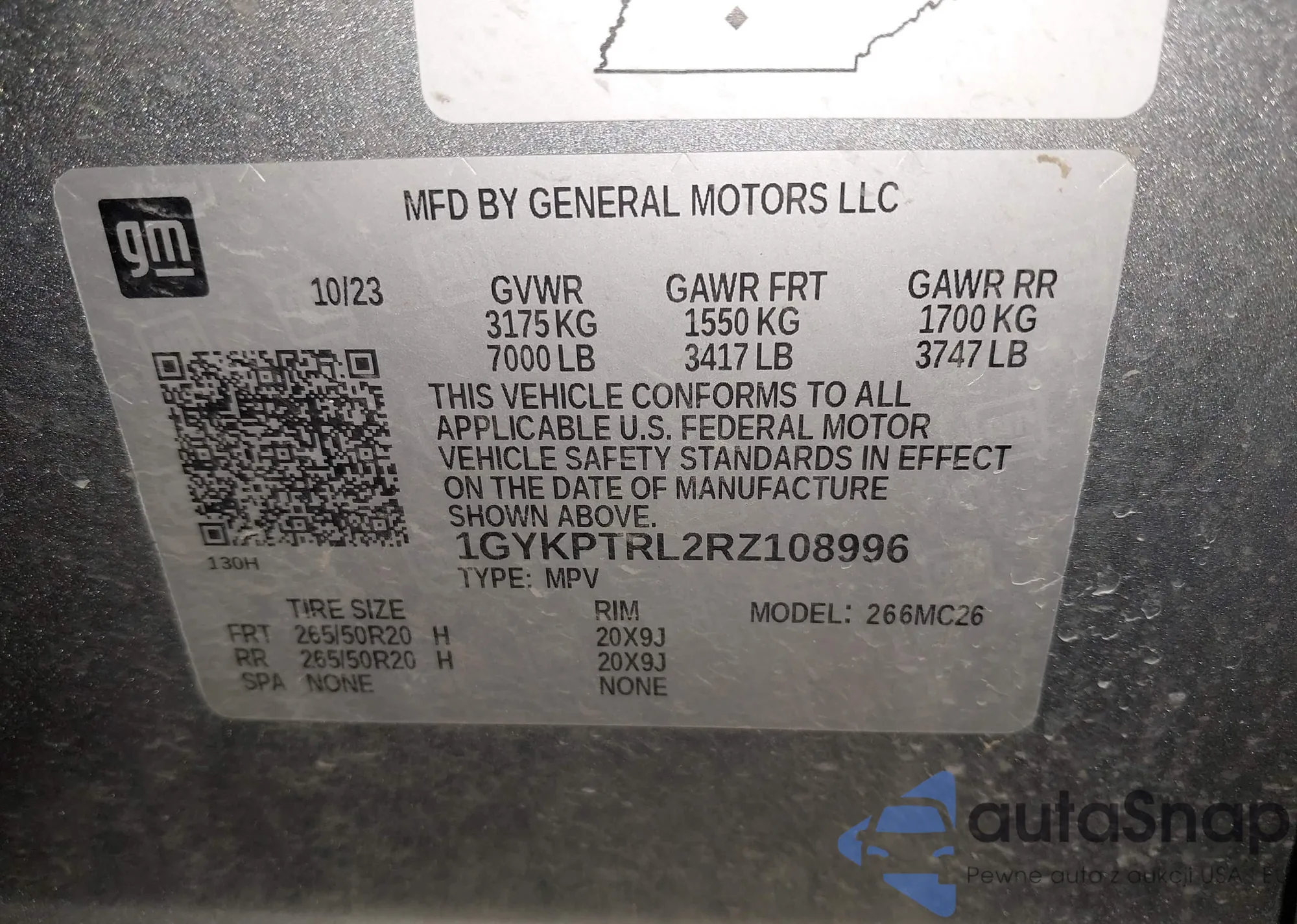 LOT: 41958313 VIN: 1GYKPTRL2RZ108996
