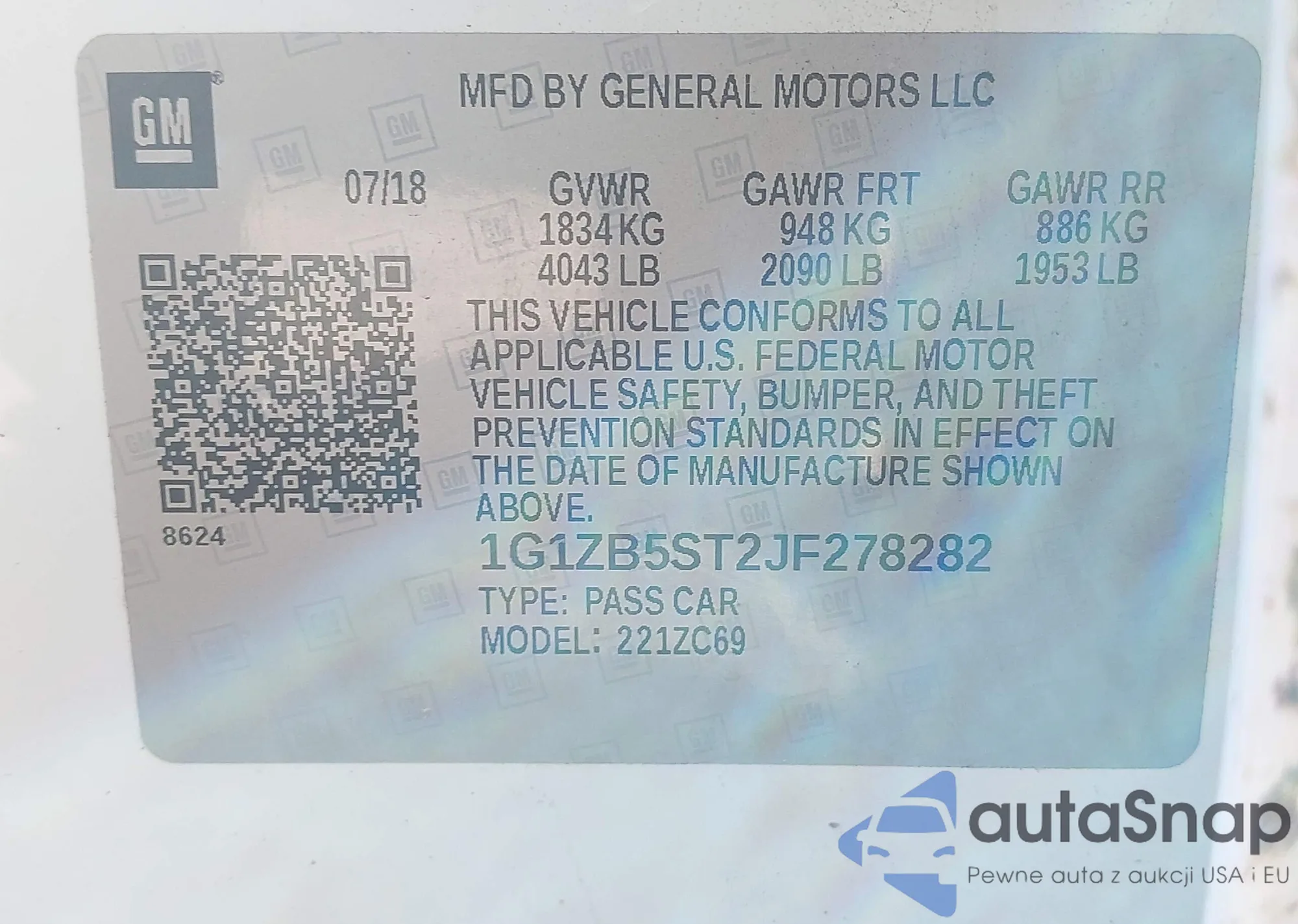 LOT: 41995956 VIN: 1G1ZB5ST2JF278282