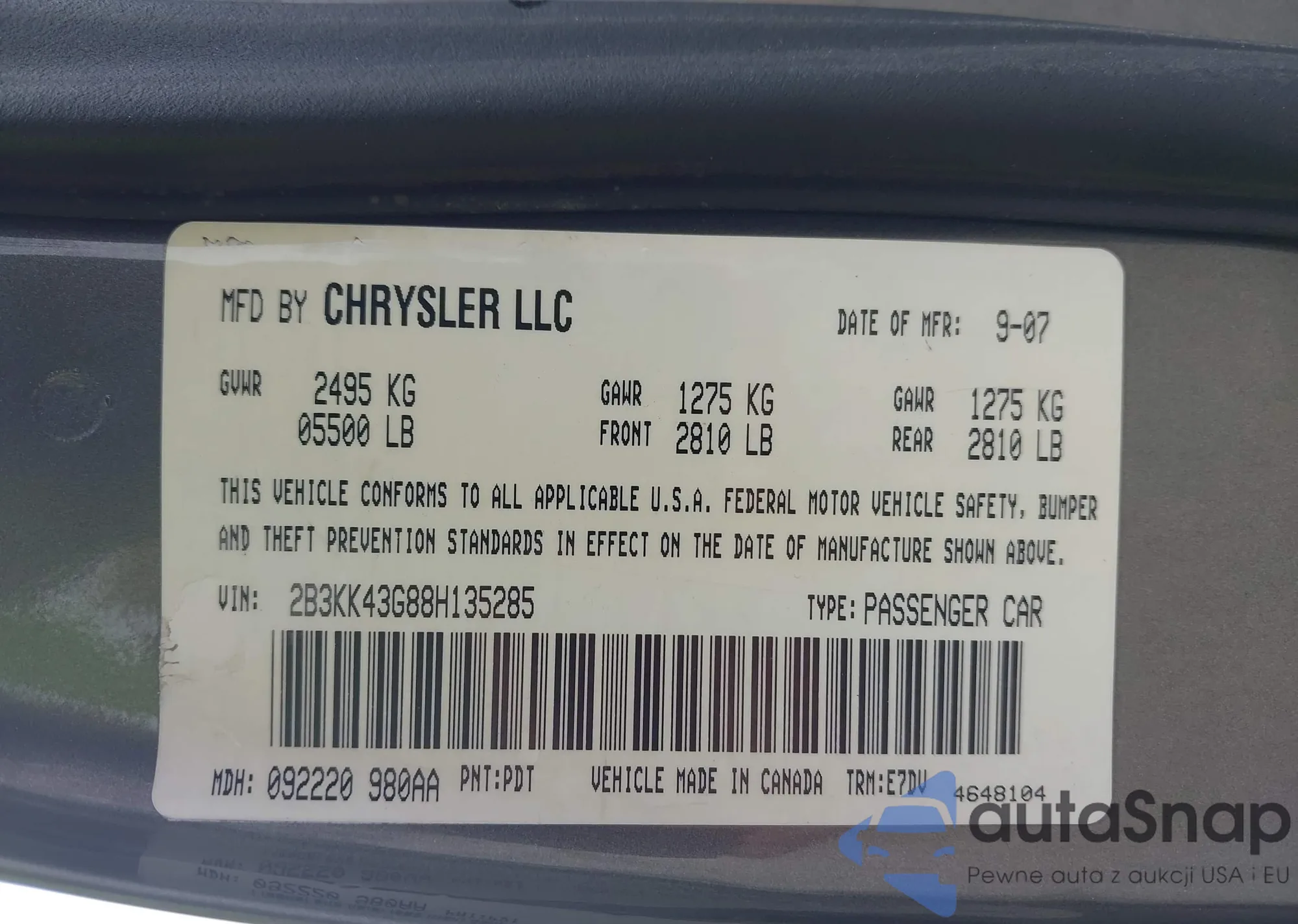 • VIN 1N4BL11D13C290488