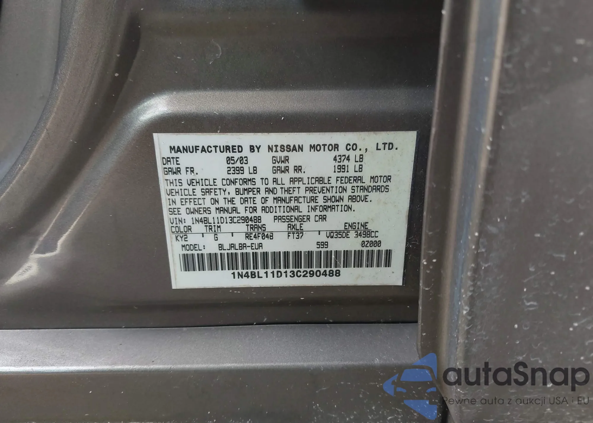 LOT: 42357527 VIN: 1N4BL11D13C290488