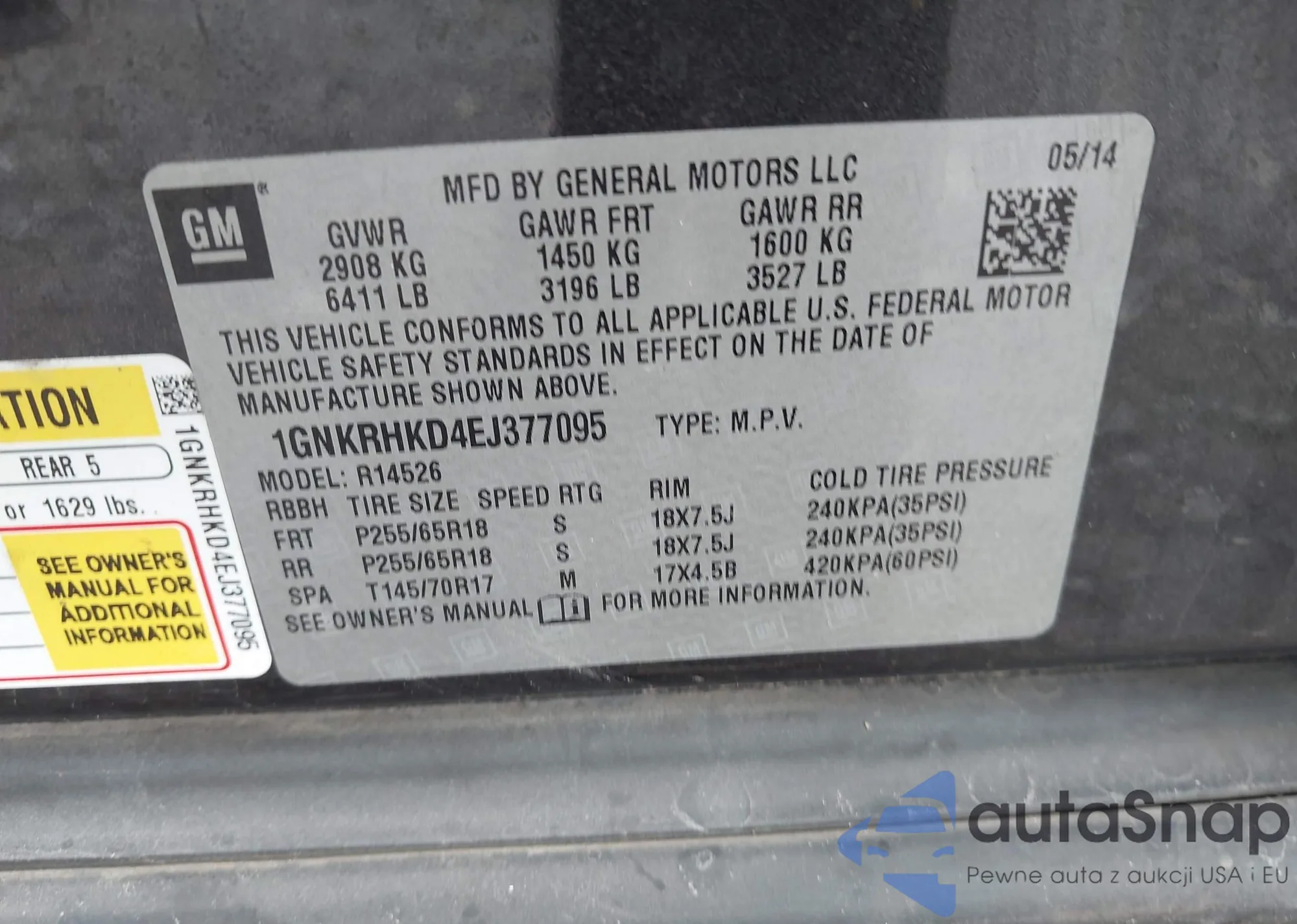 LOT: 42361811 VIN: 1GNKRHKD4EJ377095