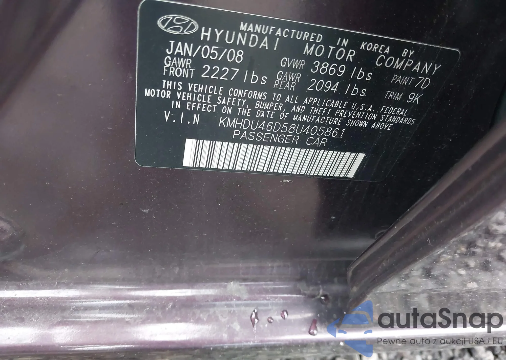 • VIN KMHDU46D58U405861