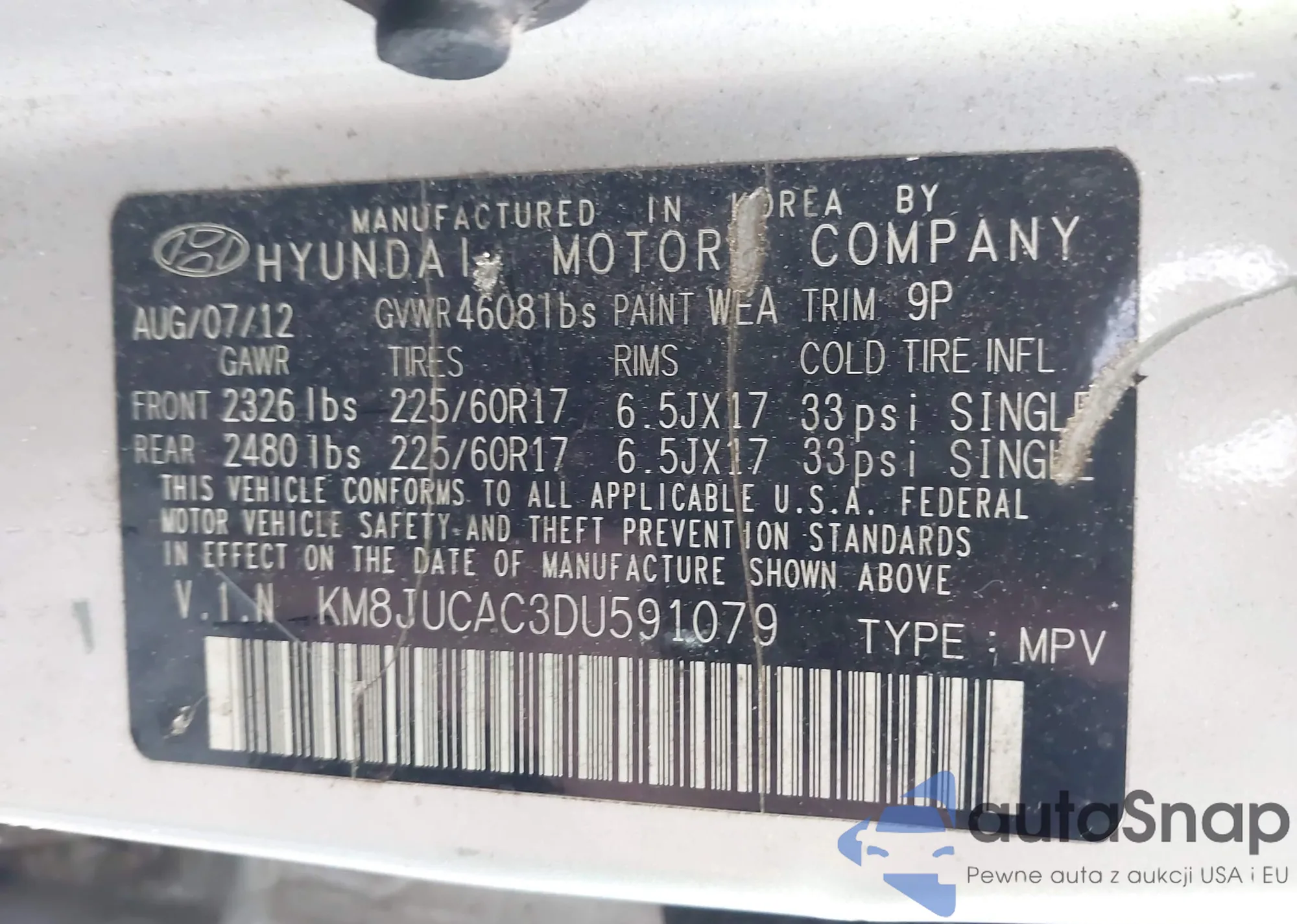 LOT: 42463680 VIN: KM8JUCAC3DU591079