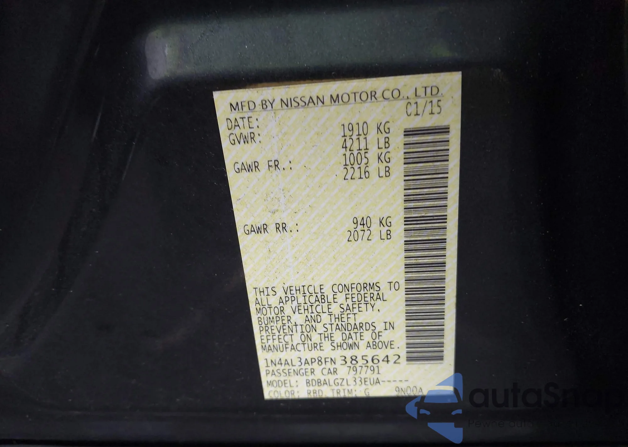 LOT: 42468488 VIN: 1N4AL3AP8FN385642