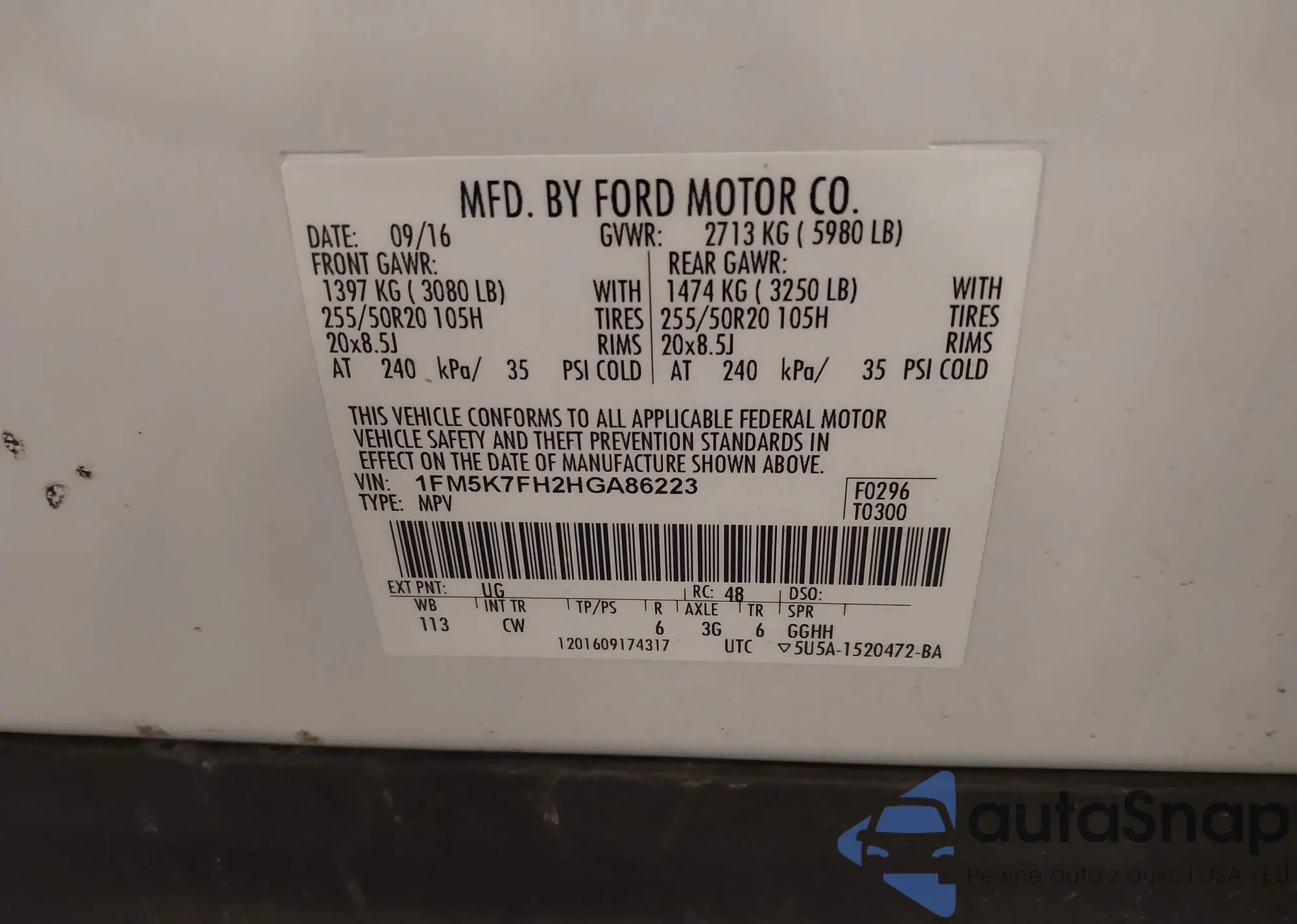 LOT: 42419177 VIN: 1FTEW1EF8HKD38950