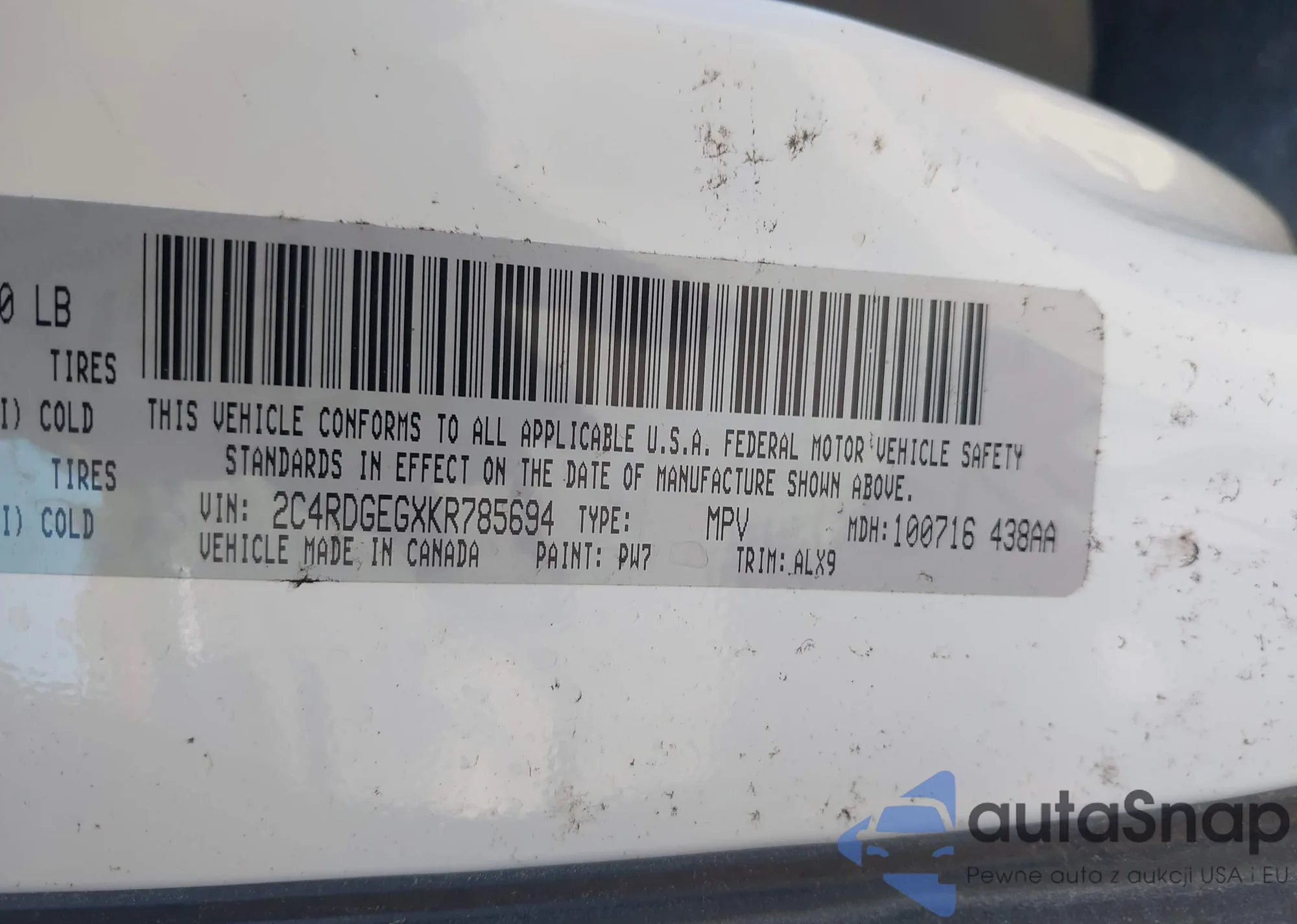 LOT: 42163799 VIN: 2C4RDGEGXKR785694