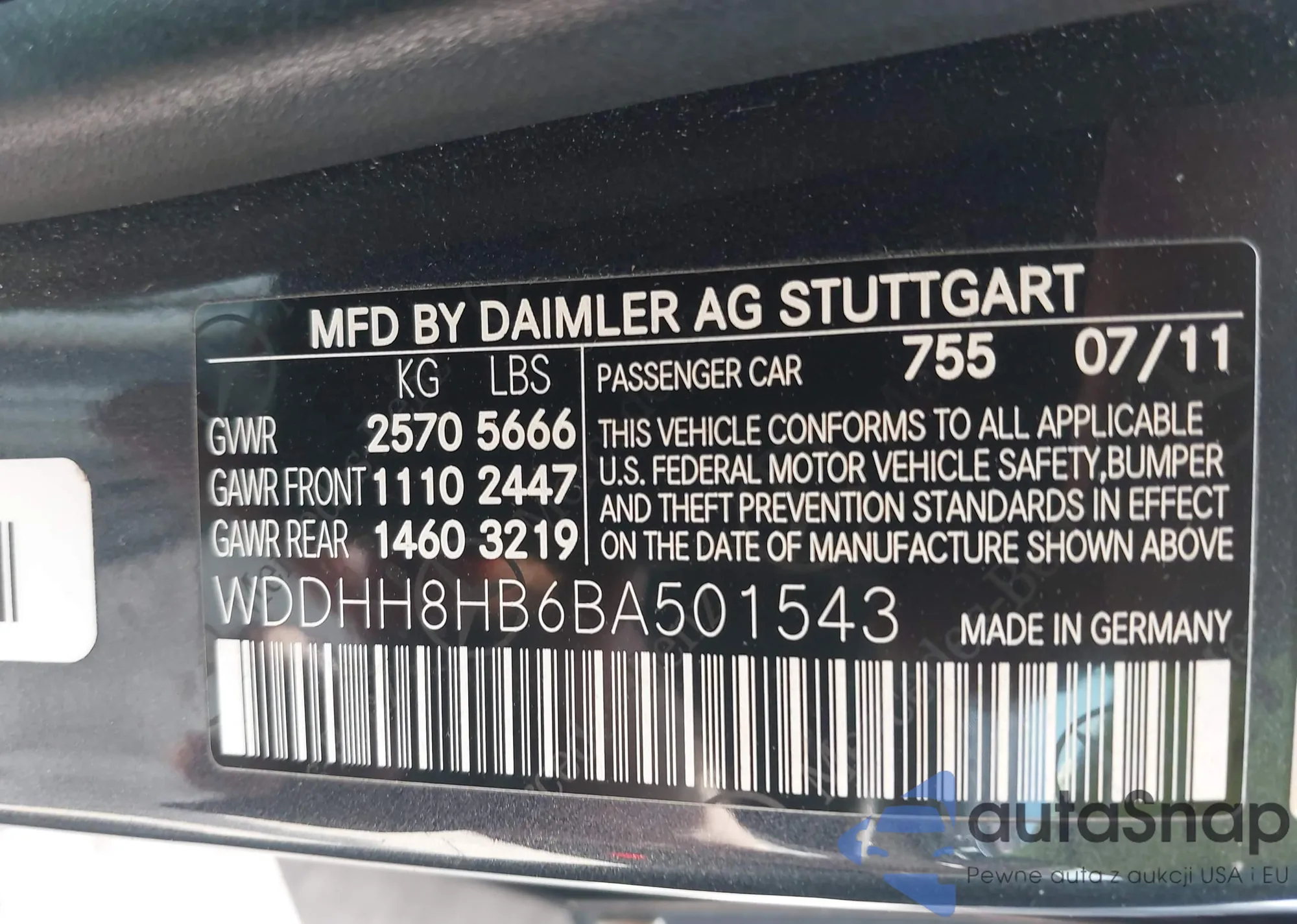 LOT: 42198815 VIN: WDDHH8HB6BA501543