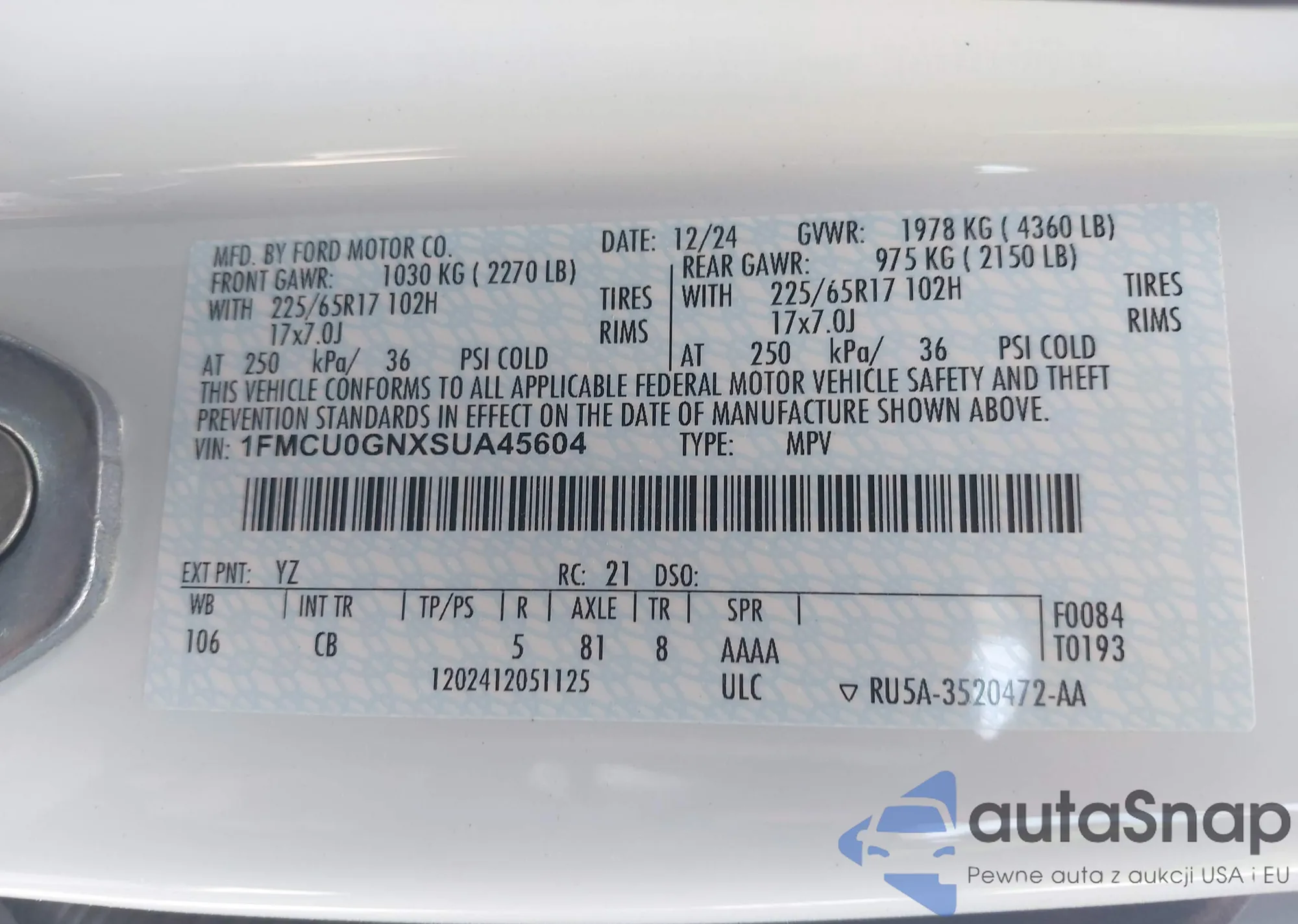 LOT: 42241943 VIN: W1N4N4HB9MJ247784