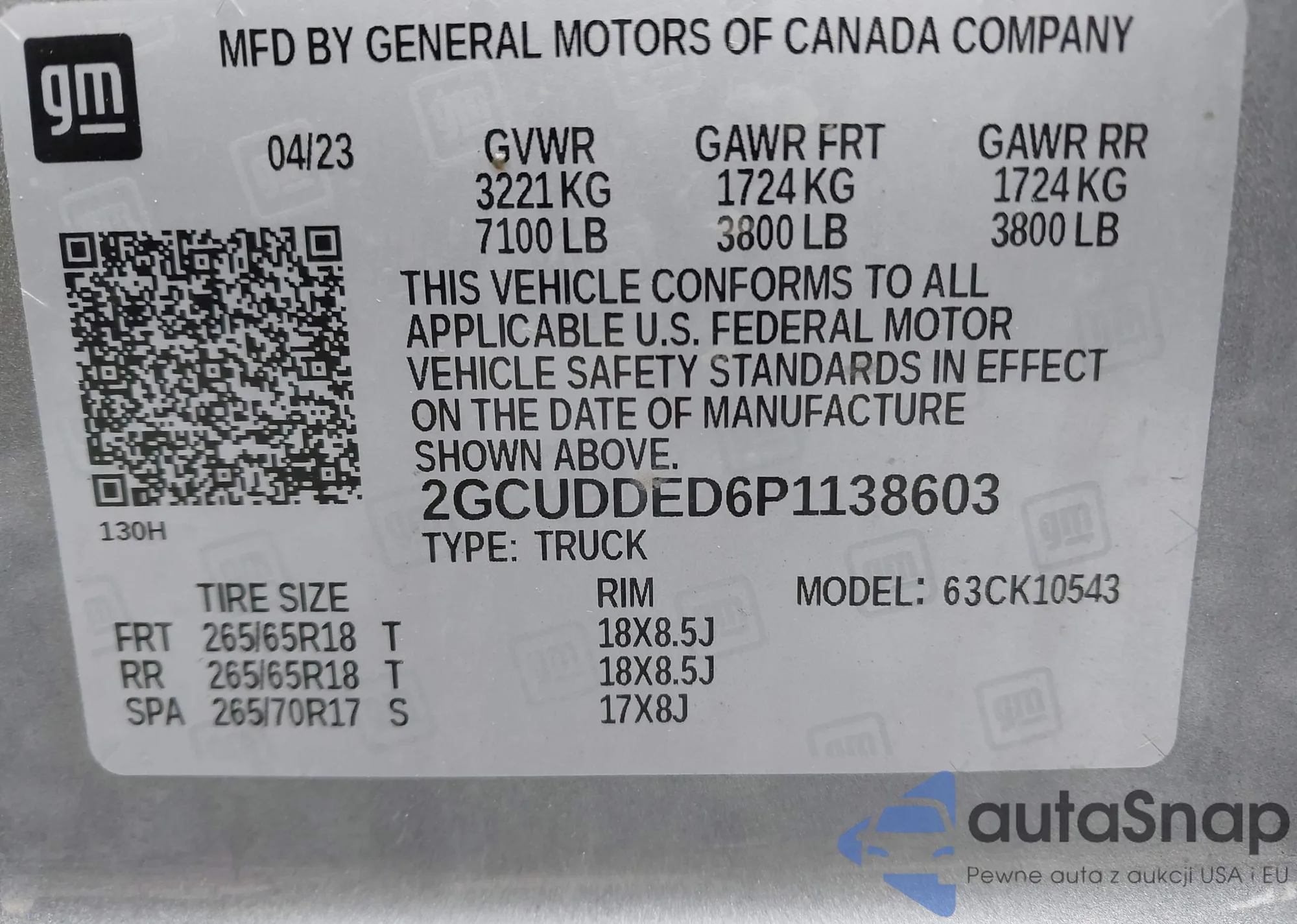 LOT: 42214324 VIN: 2GCUDDED6P1138603