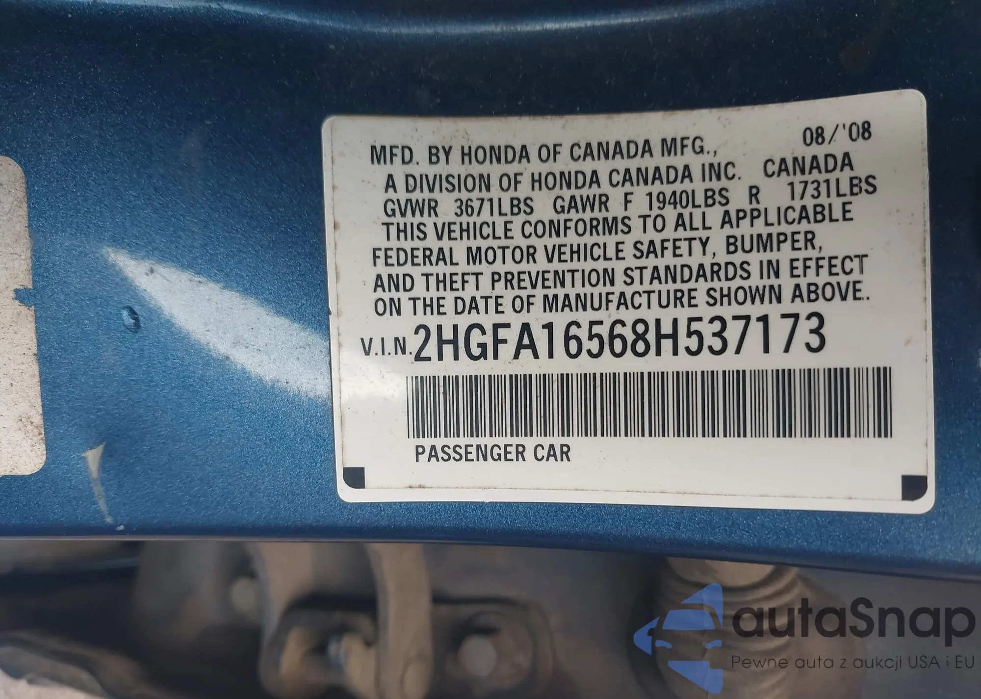 • VIN 2HGFA16568H537173