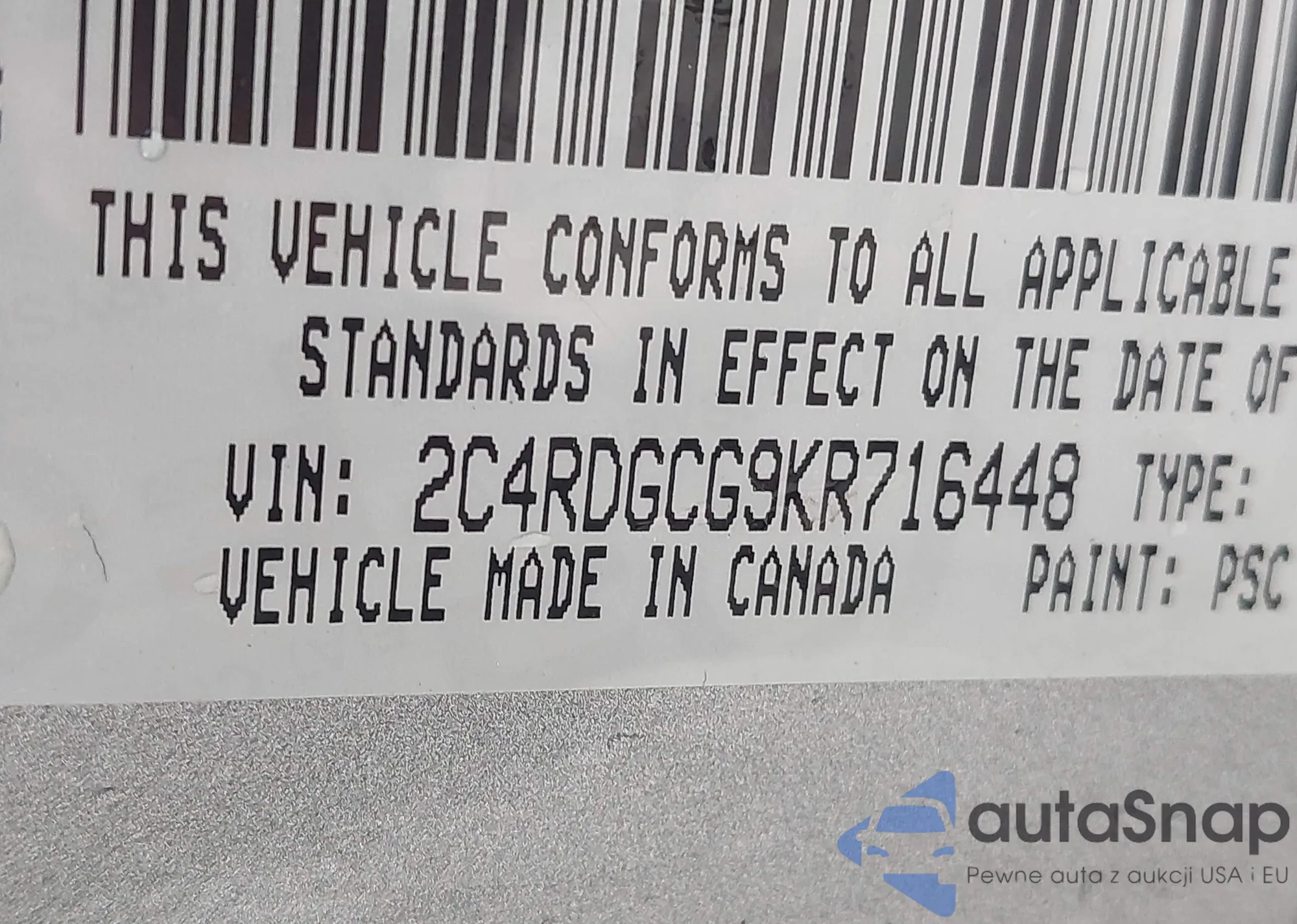 • VIN 2C4RDGCG9KR716448