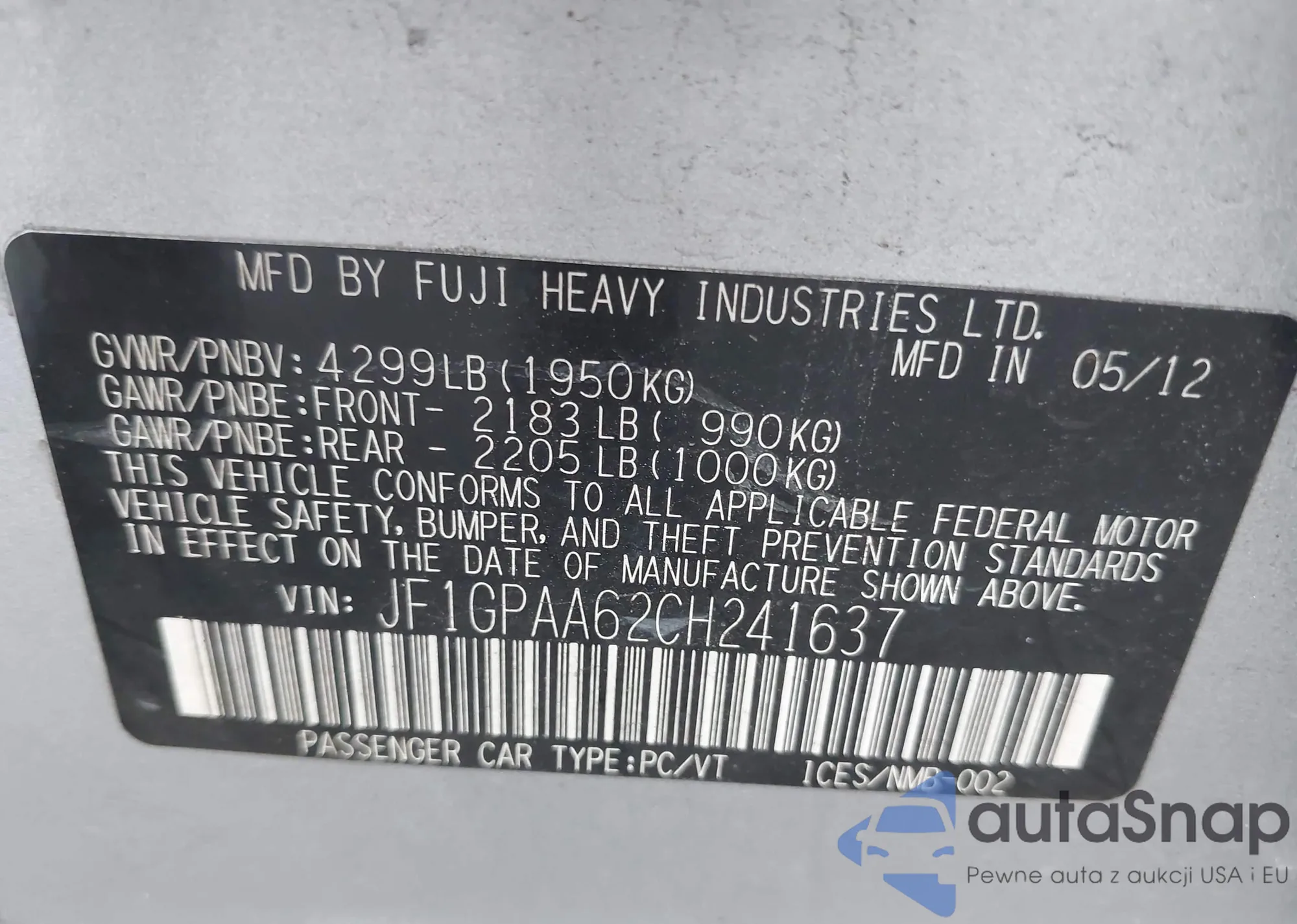 • VIN 3FADP4CJ2BM175123