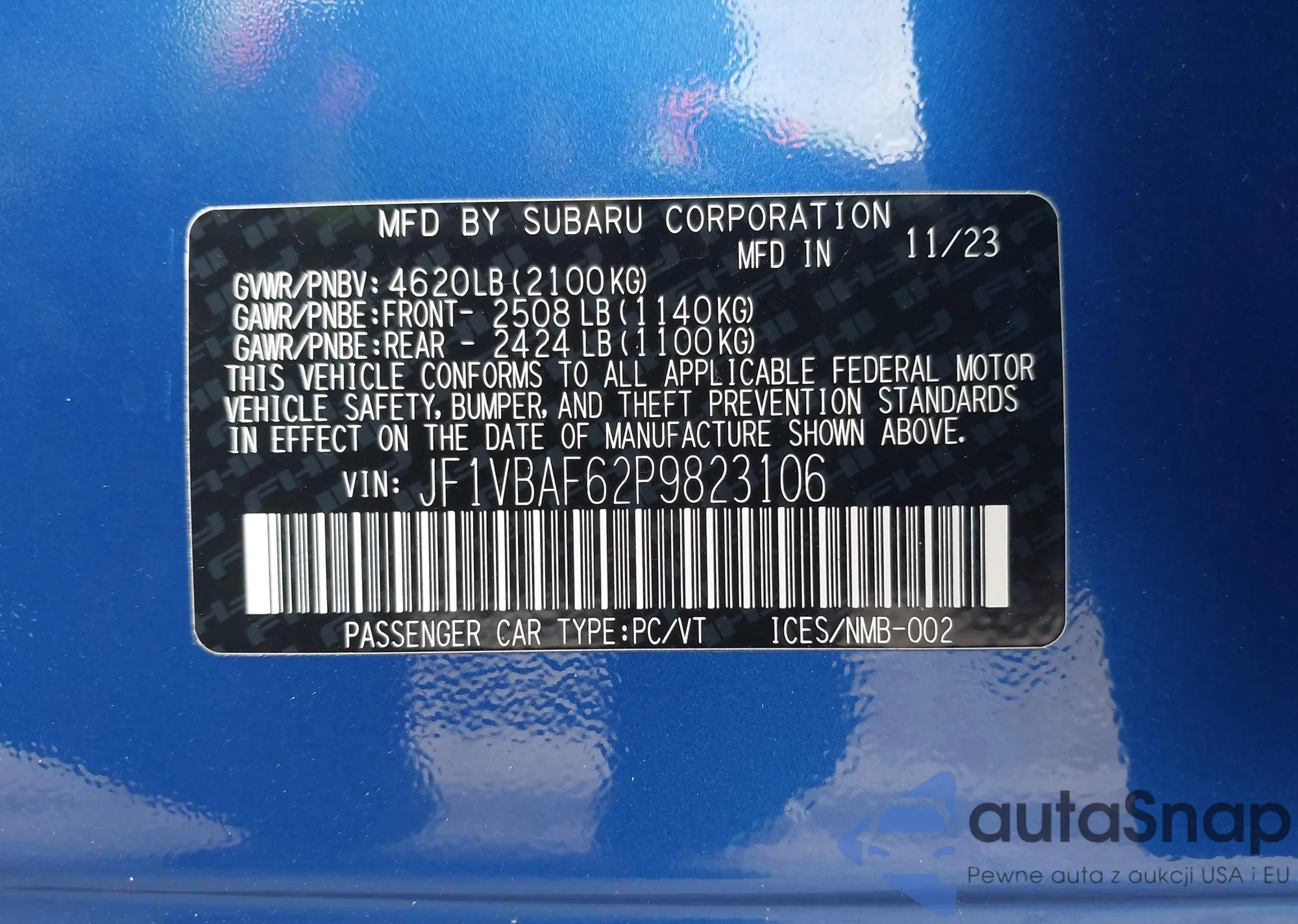 LOT: 42364780 VIN: JF1VBAF62P9823106