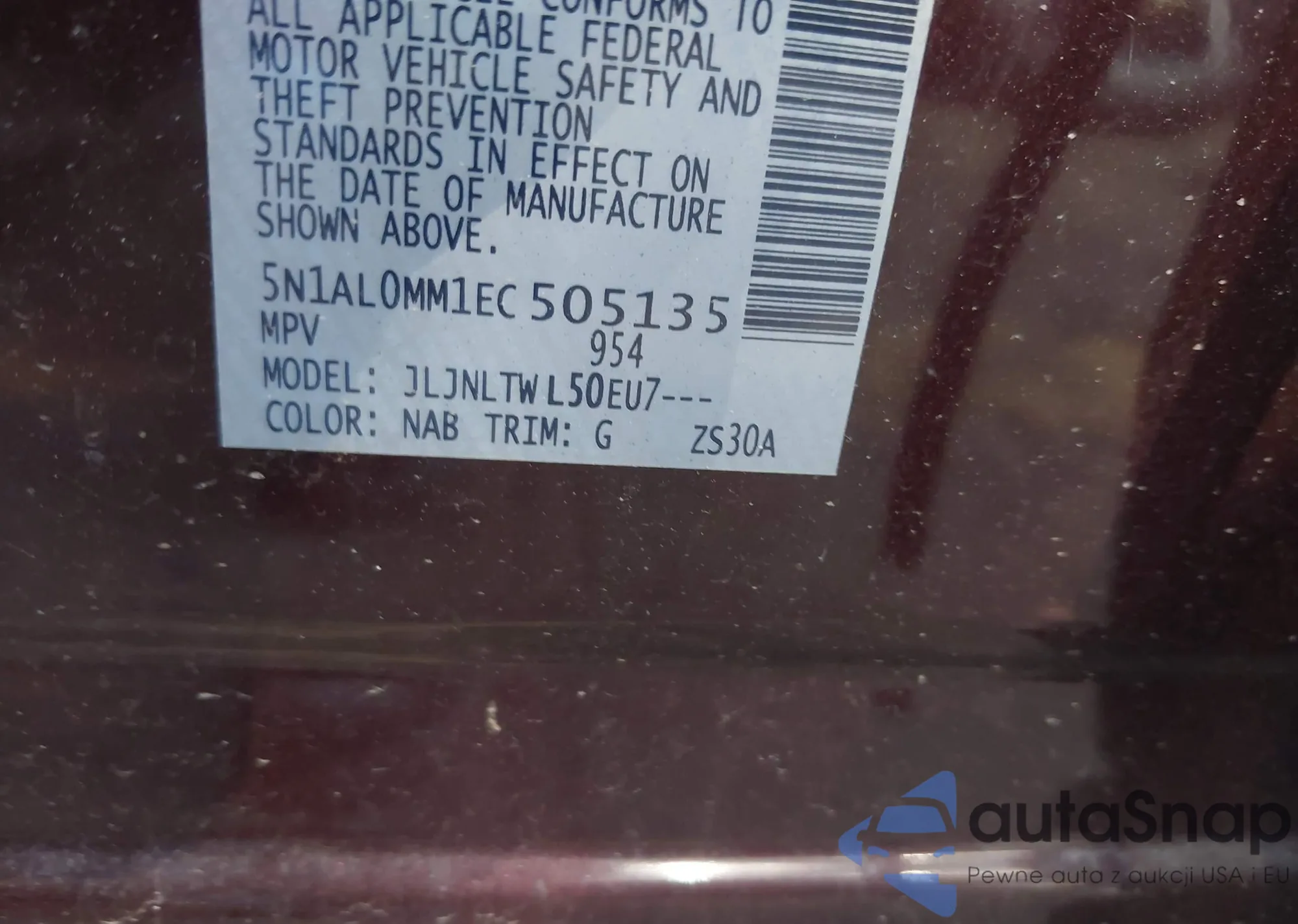 LOT: 41825744 VIN: 5N1AL0MM1EC505135