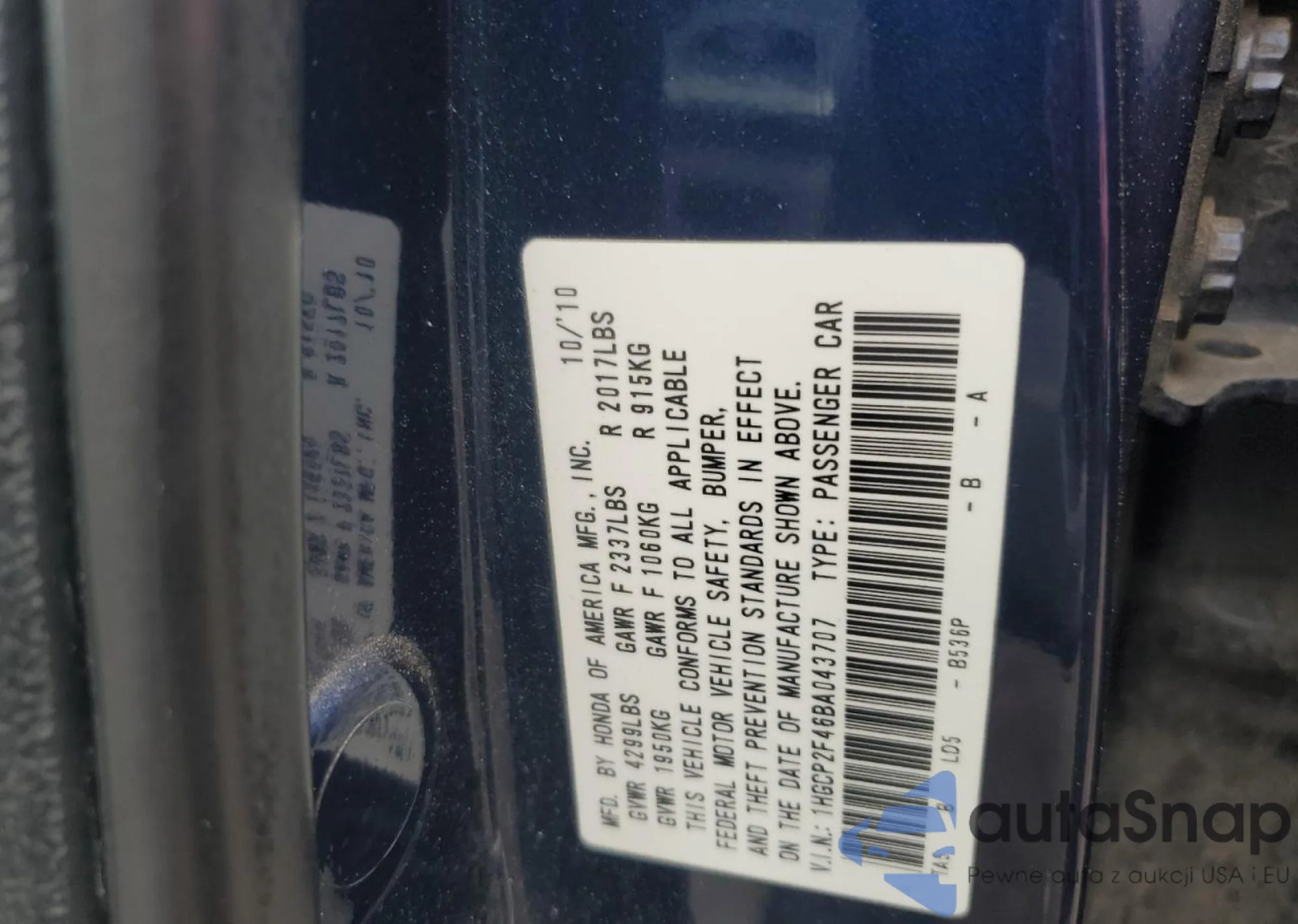 LOT: 60940415 VIN: 19UYA42591A005548