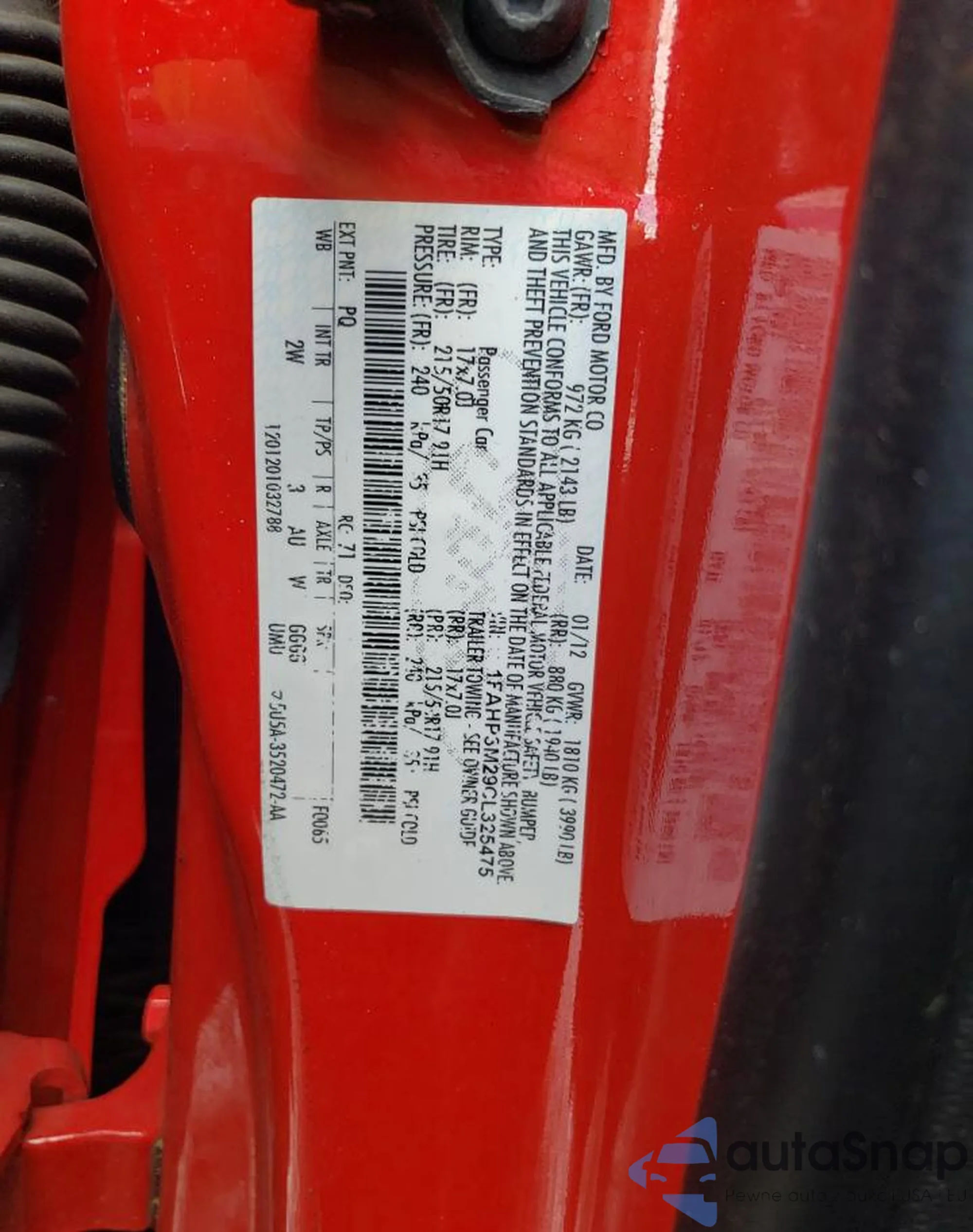 LOT: 59144125 VIN: 3FADP4FJ6CM196635