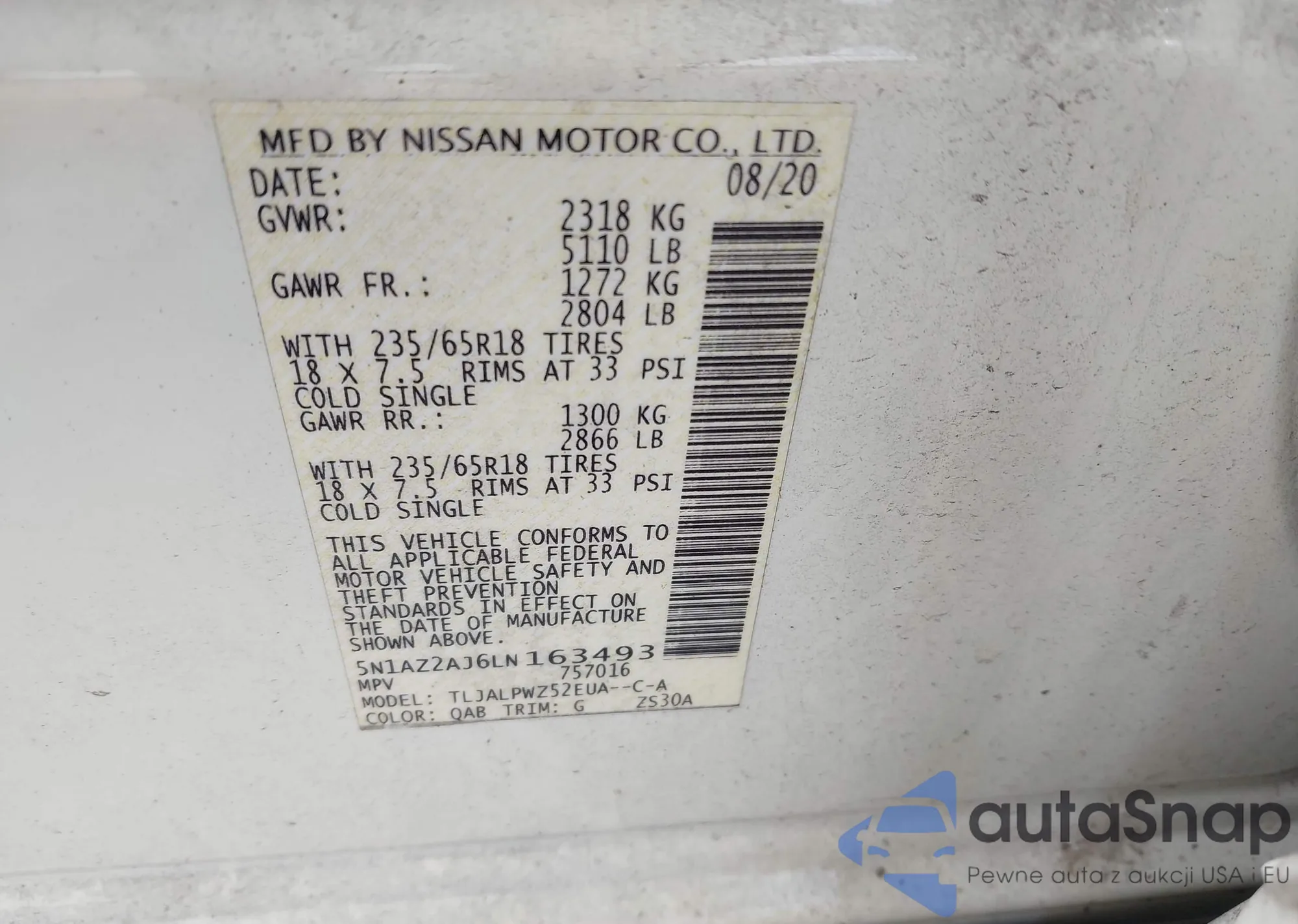 • VIN 5N1AZ2AJ6LN163493