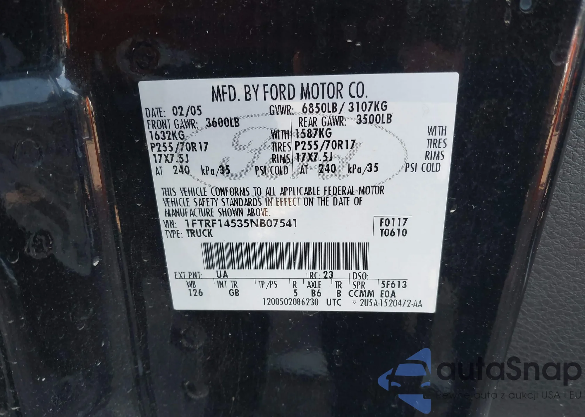 • VIN 1FTHX25F9VEC83628