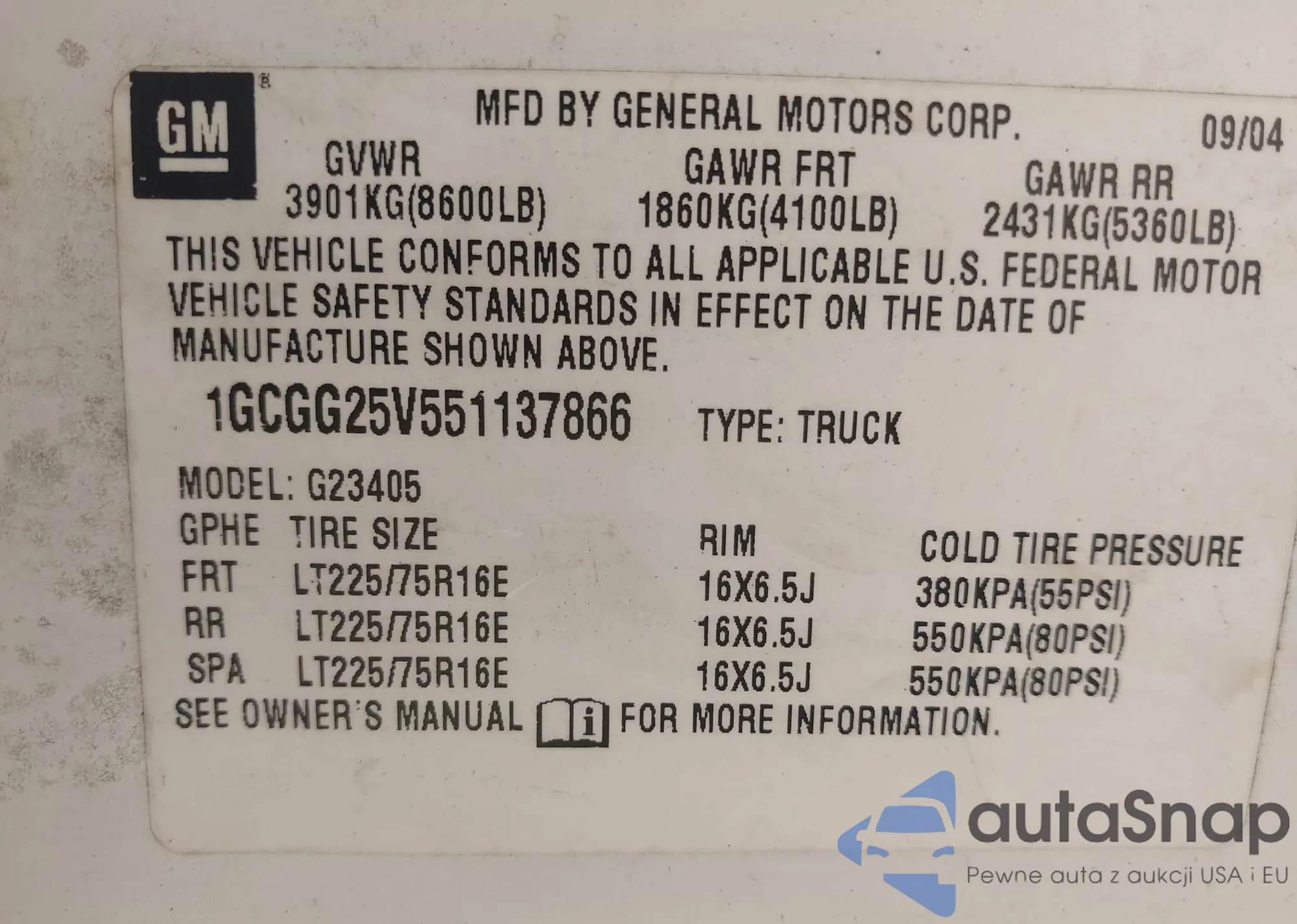 • VIN 1GCGG25V551137866