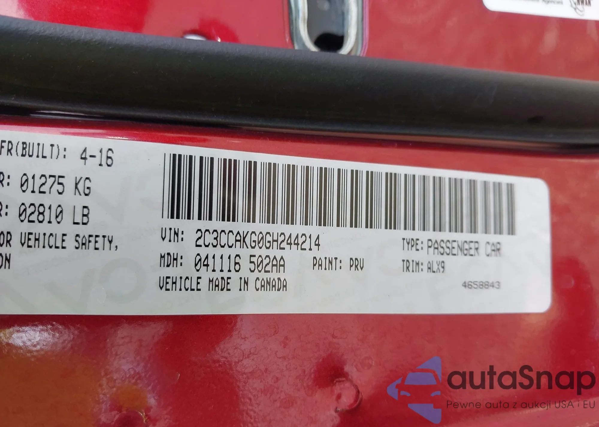 • VIN 2C3CCAKG0GH244214