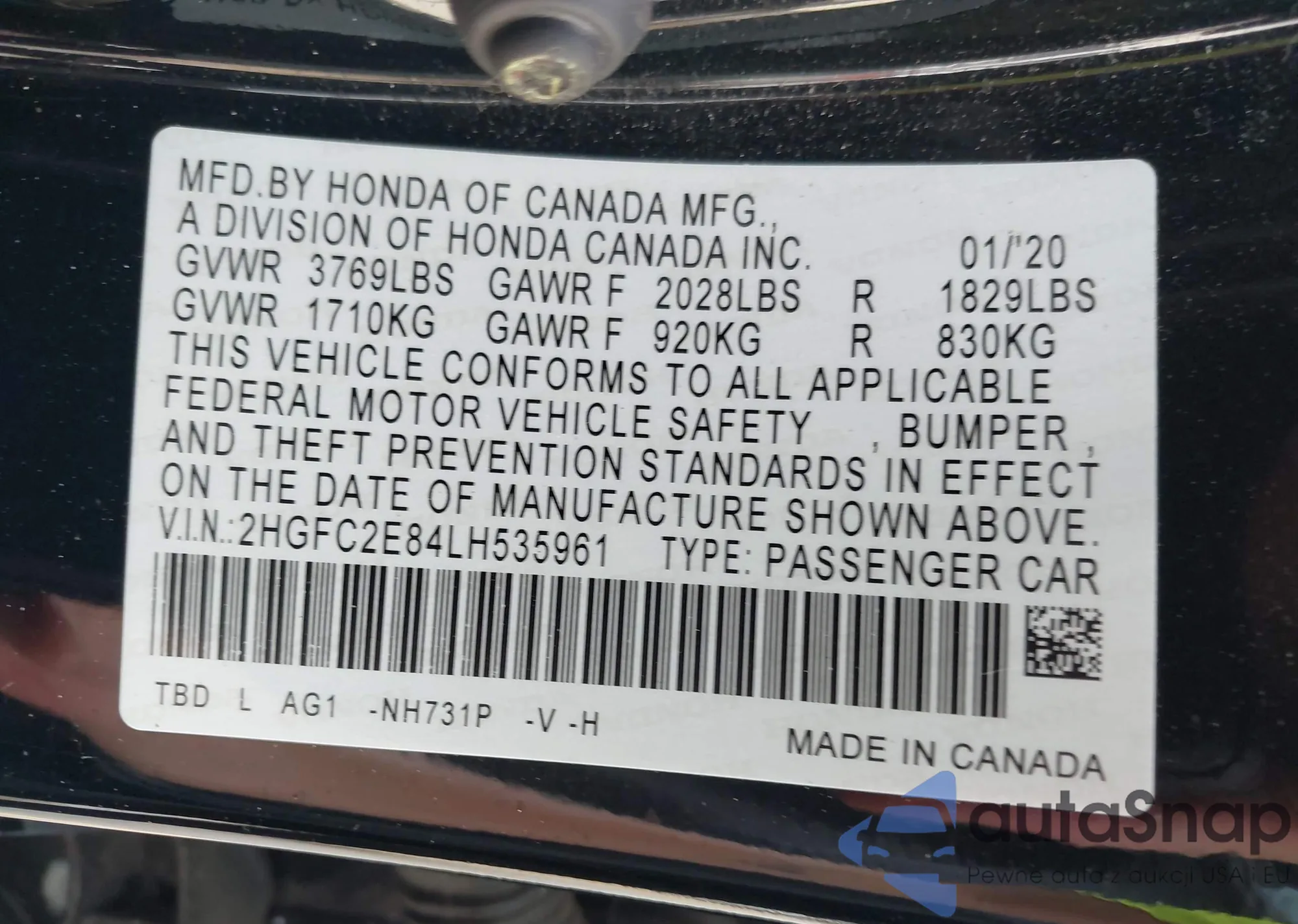• VIN 2HGFC2E84LH535961