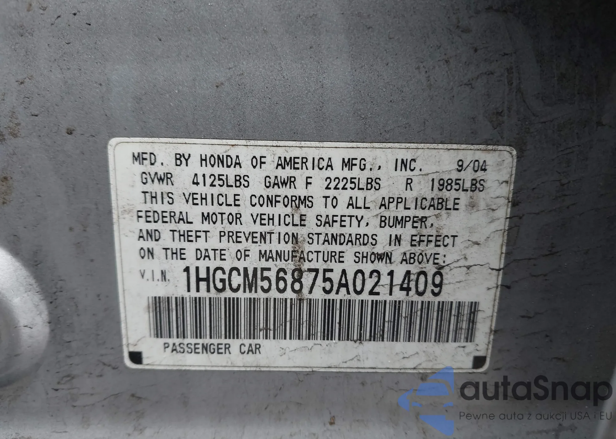 LOT: 41975181 VIN: 1HGCM56875A021409