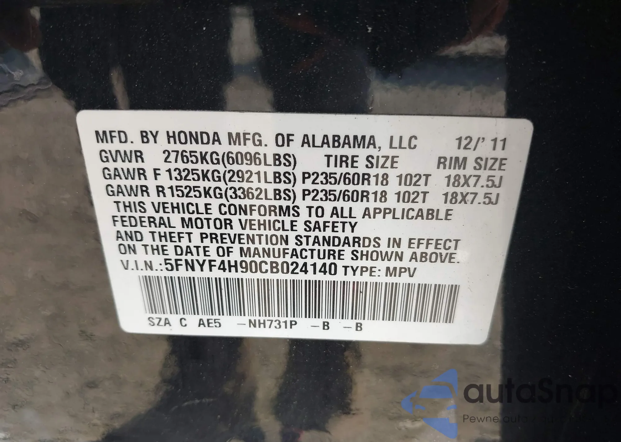 • VIN 4T3ZA3BB6CU060823