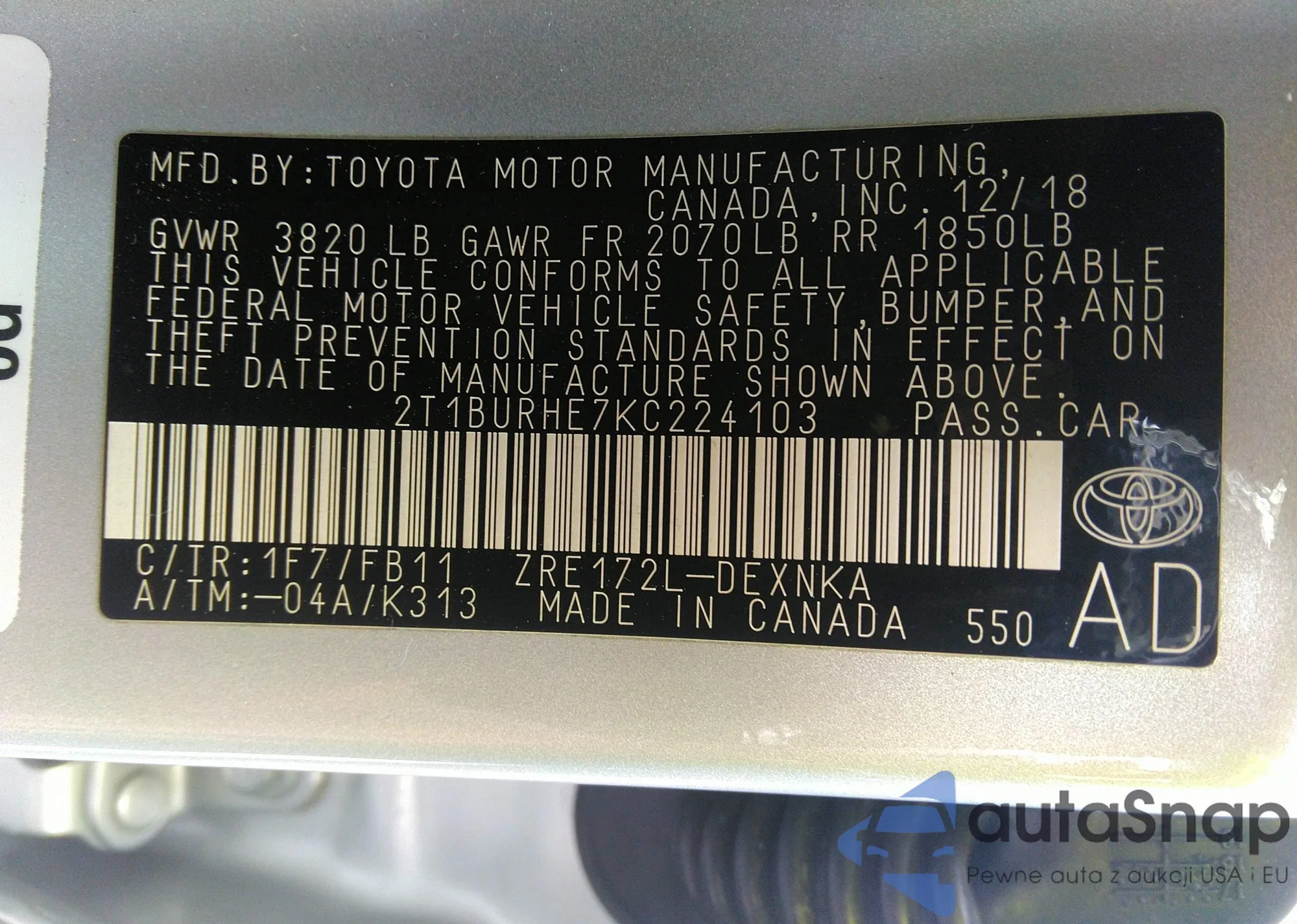 • VIN 2T1BURHE7KC224103