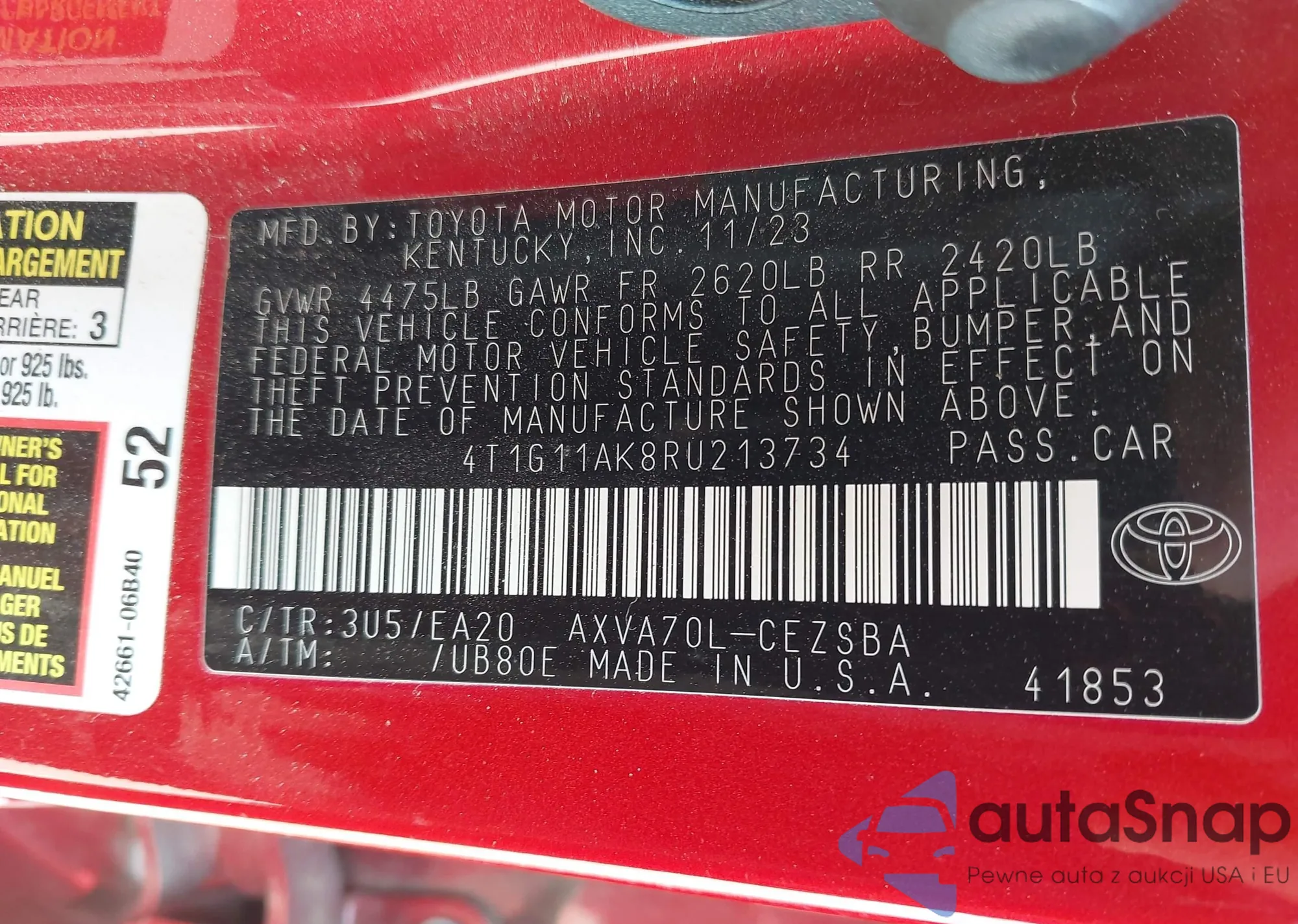 LOT: 42533538 VIN: 4T1G11AK8RU213734