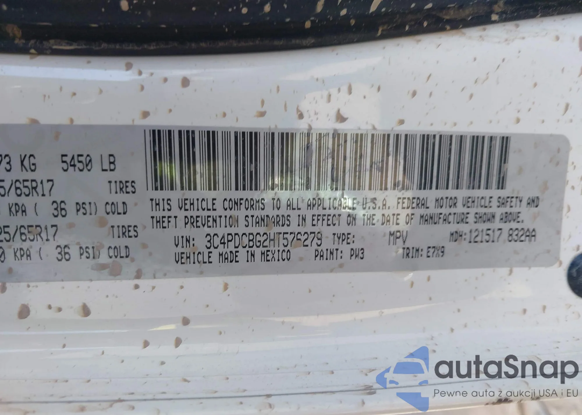 LOT: 42057255 VIN: 3C4PDCBG2HT576279