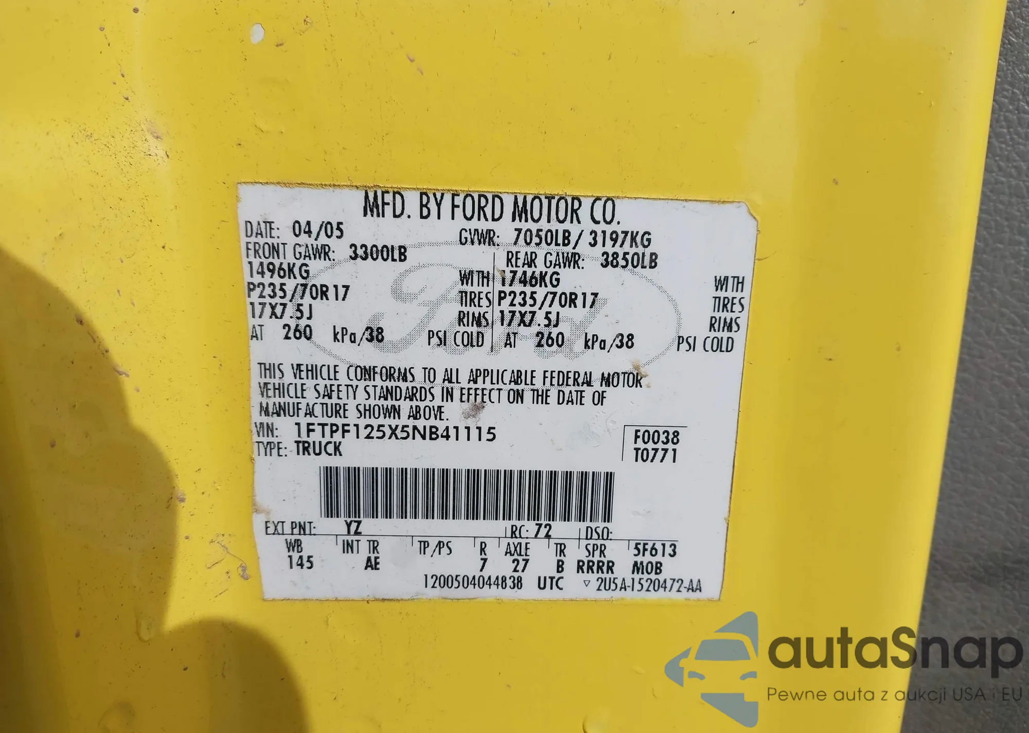 • VIN 1FTPF125X5NB41115