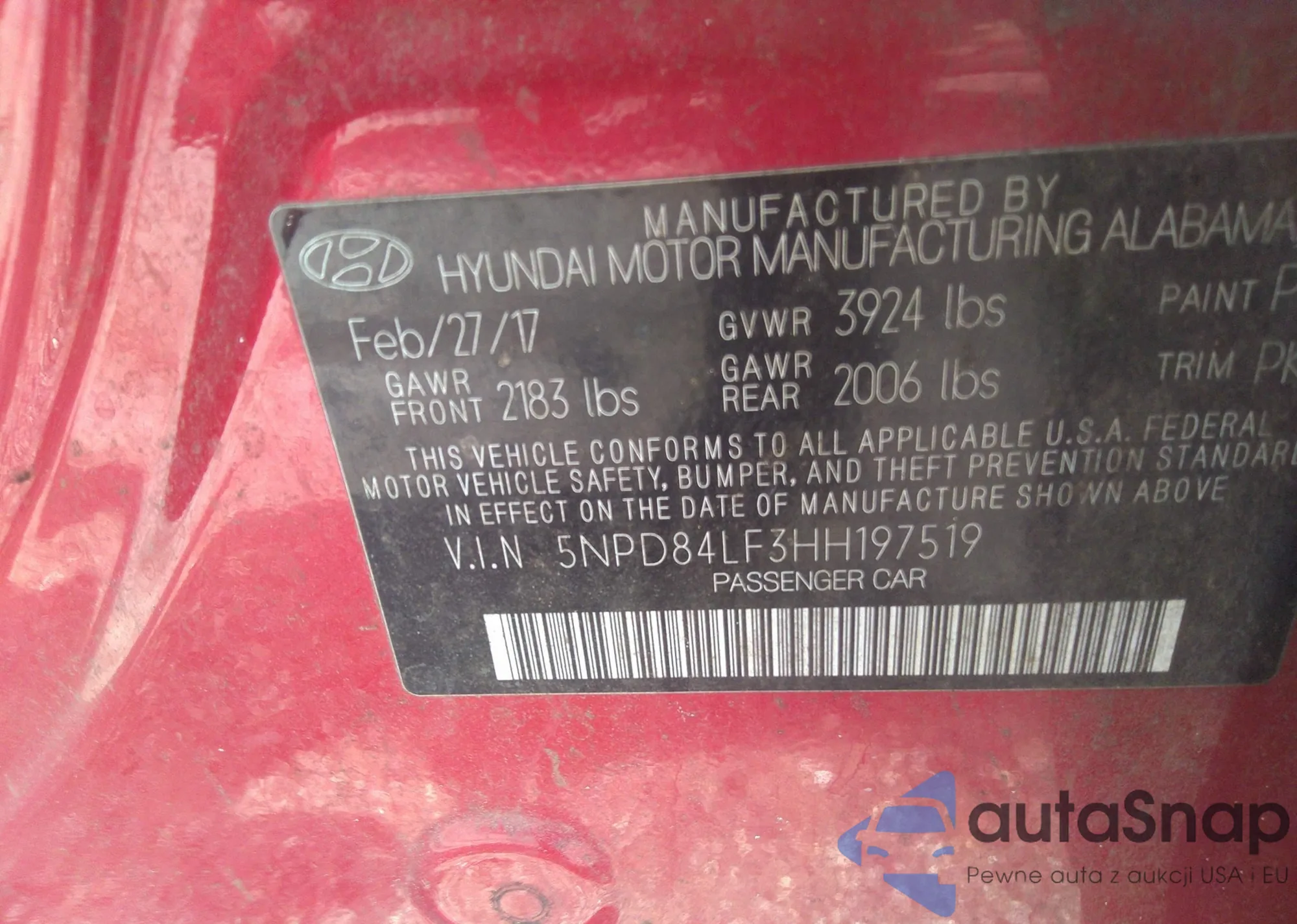 • VIN 5NPD84LF3HH197519