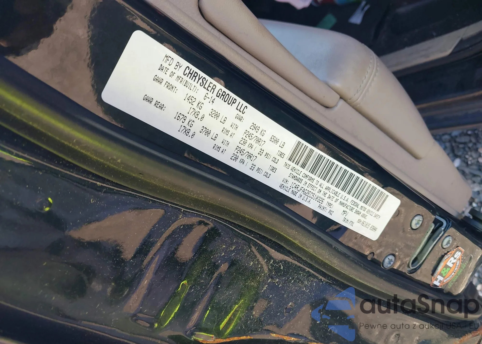 • VIN 1C4RJFAG2EC510326