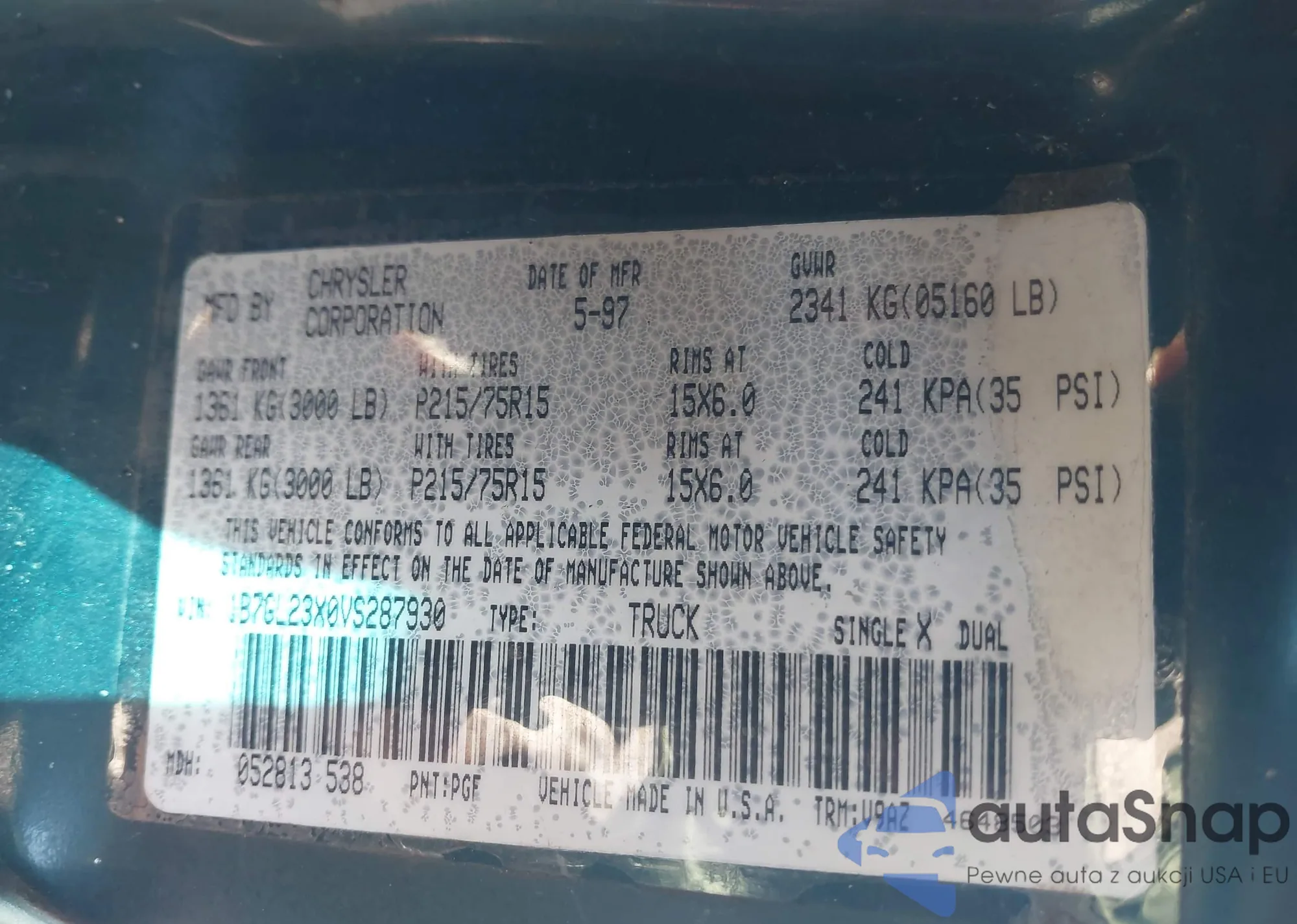 • VIN 1B7GL23X0VS287930