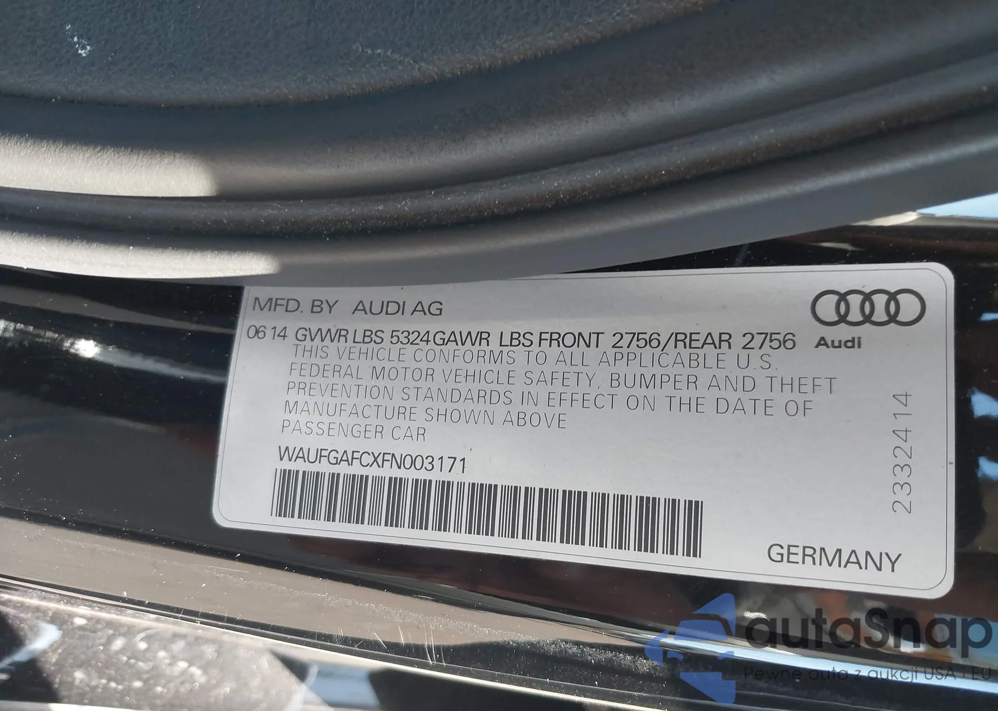 LOT: 41262612 VIN: WAUFGAFCXFN003171