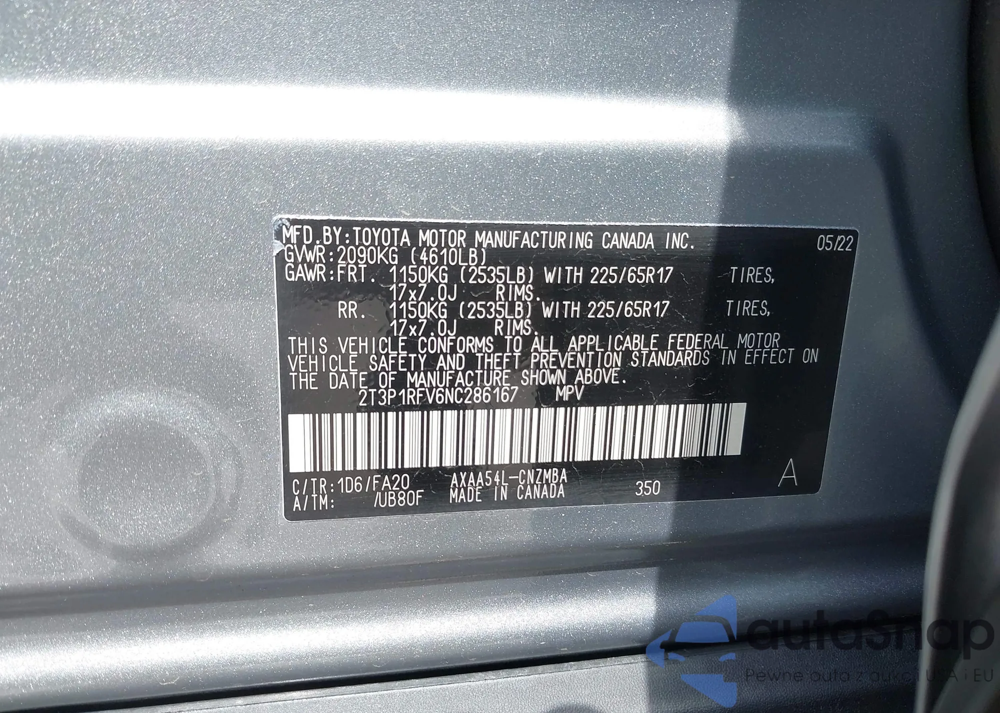 • VIN 2T3P1RFV6NC286167
