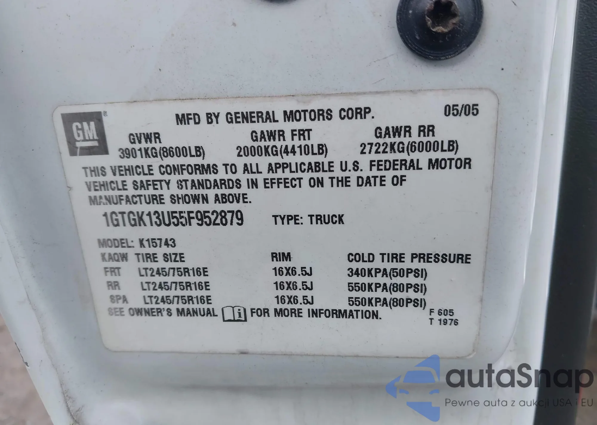 LOT: 42493035 VIN: 1GTGK13U55F952879