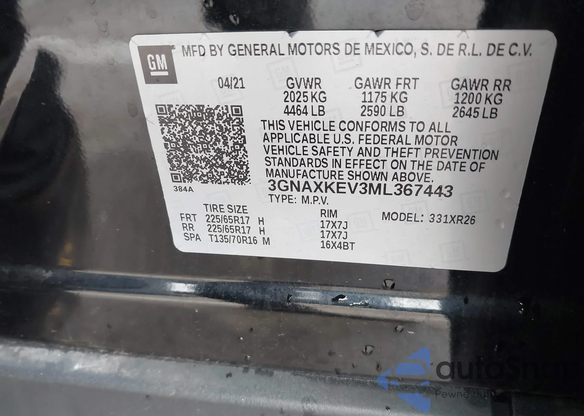 LOT: 42305765 VIN: SAJAR4BG5HA971921