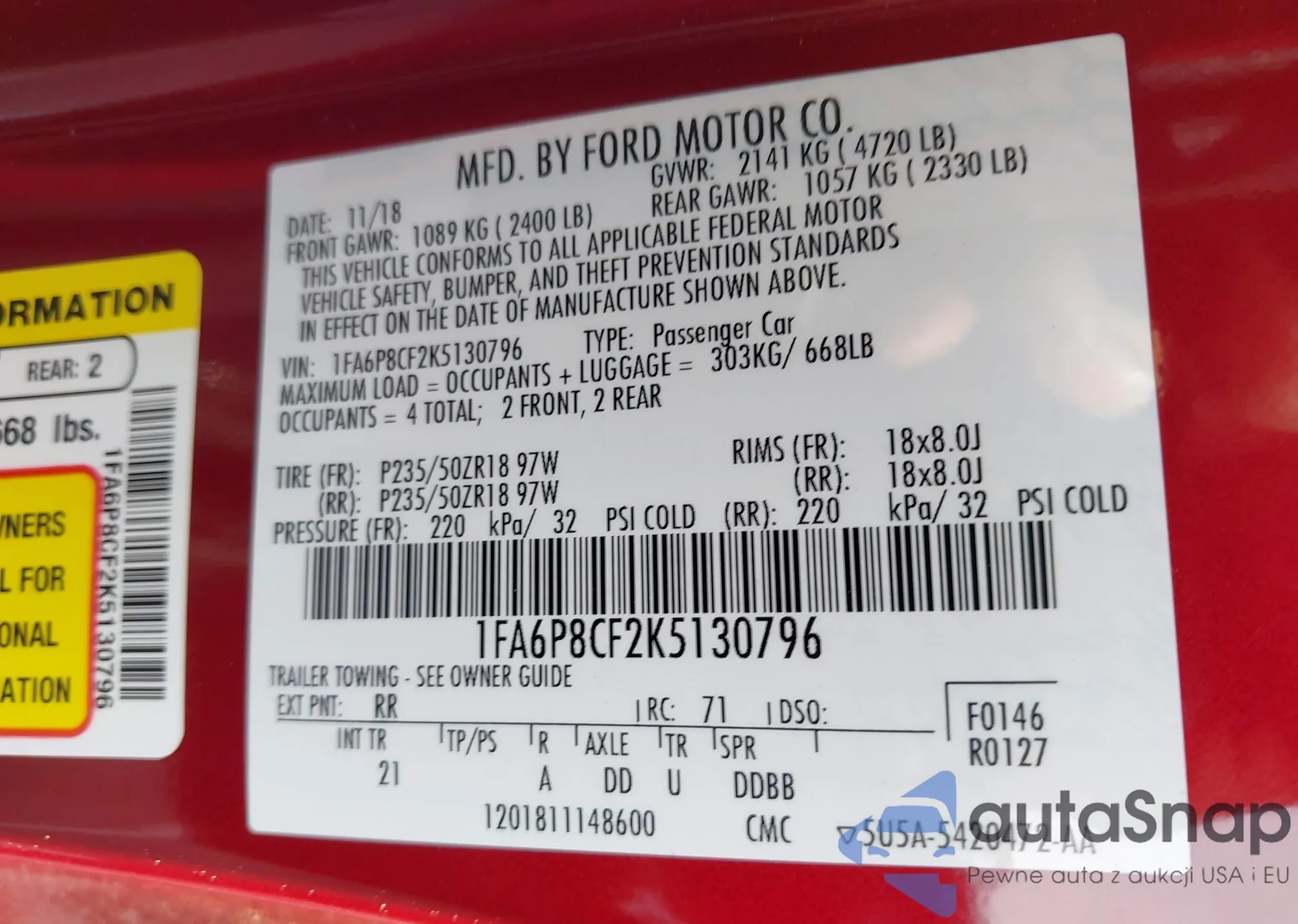• VIN WBAJA7C5XJG907944