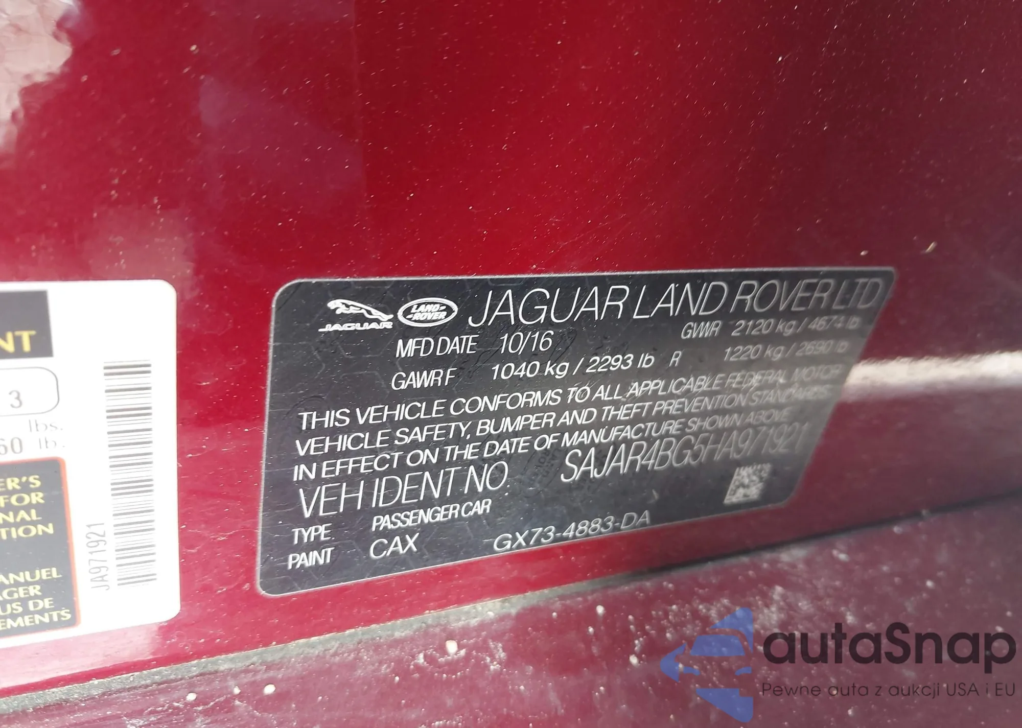 • VIN SAJAR4BG5HA971921