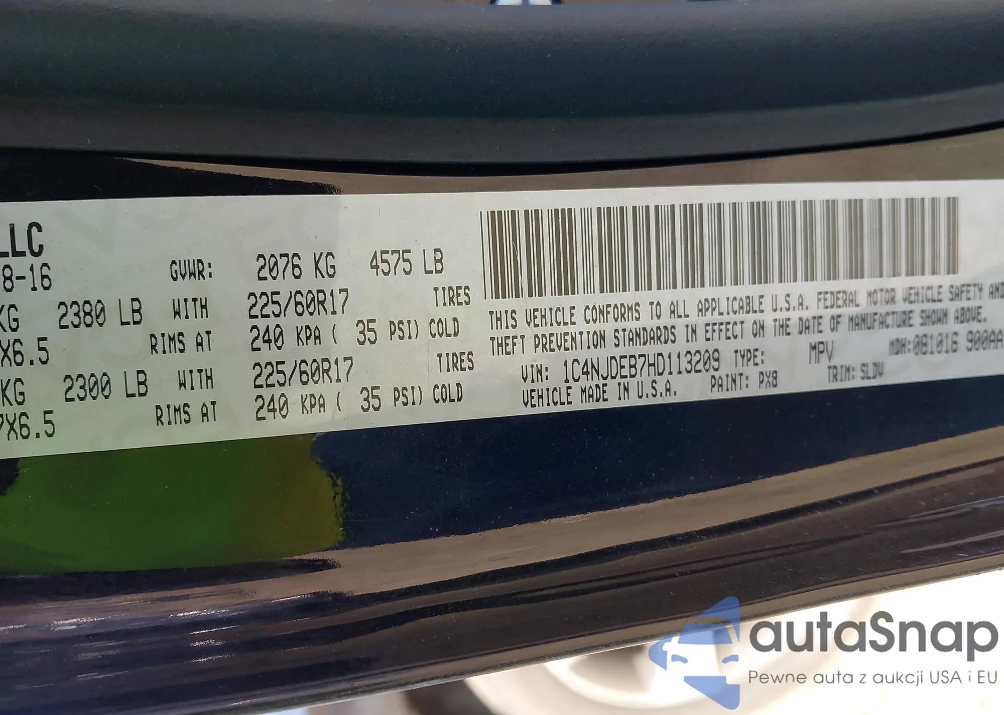 • VIN 1C4NJDEB7HD113209