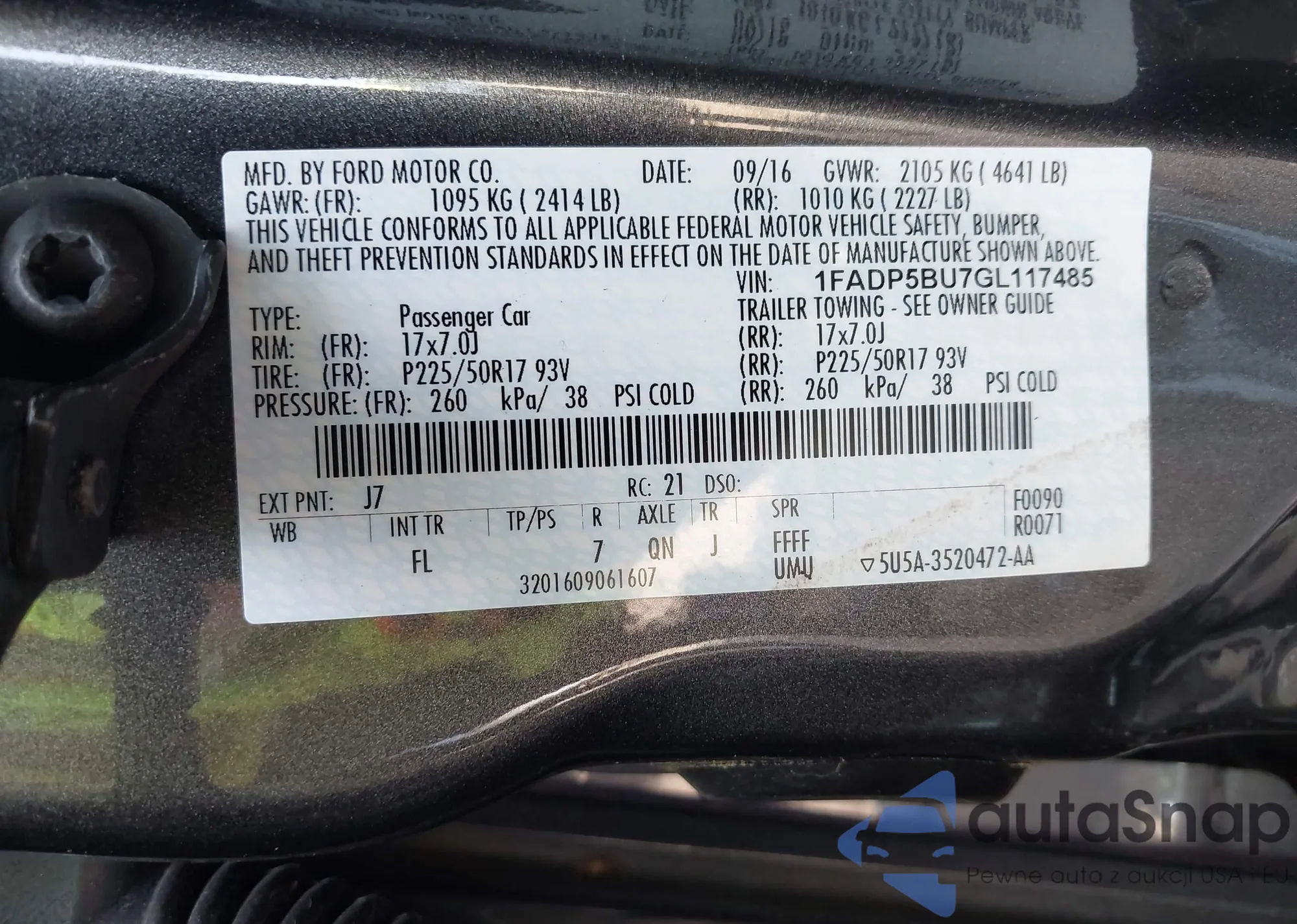 • VIN 1FADP5BU7GL117485